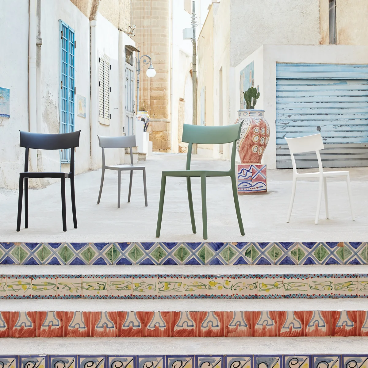 In verschiedenen Farben erhältlich passt sich der Stuhl jedem Ambiente optimal an und lädt zum Sitzen und Verweilen ein. Bei Nichtgebrauch kann der Stuhl bis zu 5 Stck. gestapelt werden.