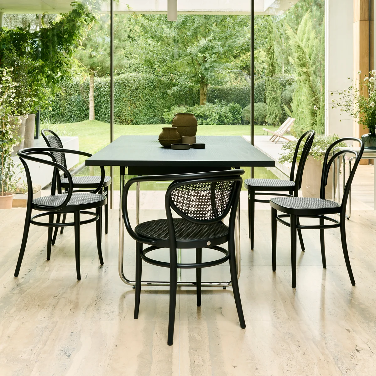 Thonet - 215 R Bugholzstuhl, Rohrgeflecht Dark Melange mit Kunststoffstützgewebe / Buche schwarz (TP 29)