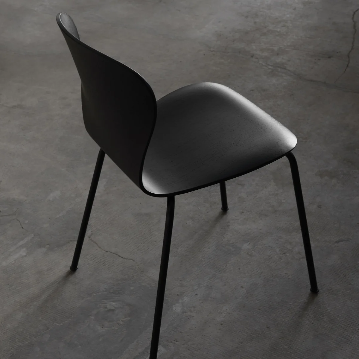 Facility) in einen materialeffizienten und stapelbaren Formholz-Stuhl mit ergonomischer Sitzschale auf einem leichten Stahlrohrgestell. Auf Wunsch ergänzen Bugholz Armlehnen das im Privat- wie Objektbereich universell einsetzbar und in verschiedenen Holzarten und Farbgebungen erhältliche Sitzmöbel.