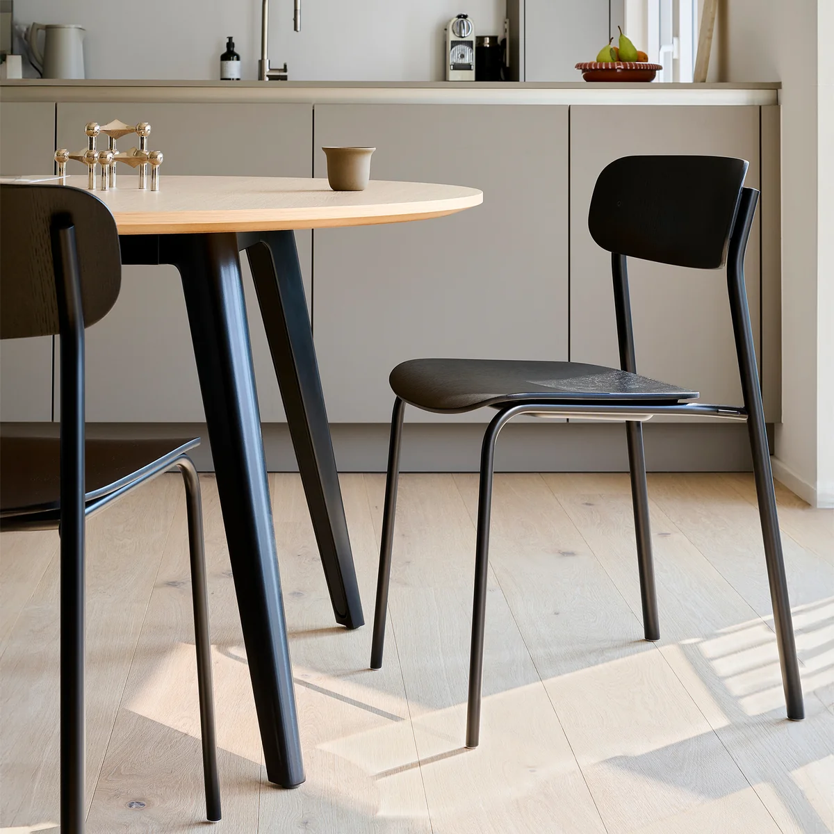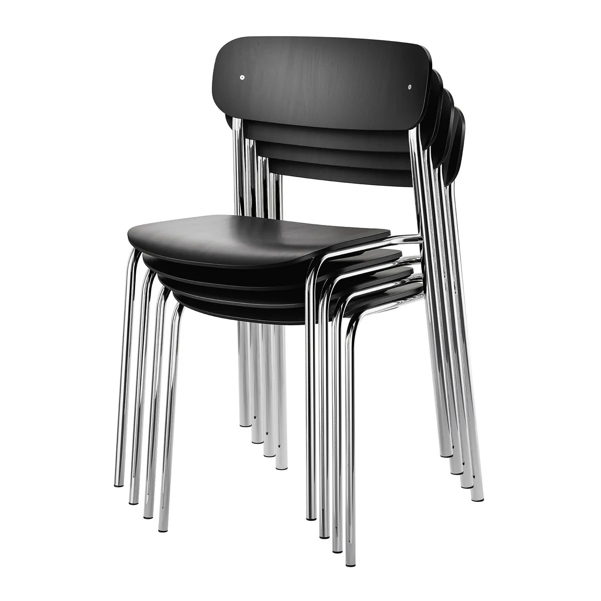 Der S 243 Stuhl kombiniert ein Stahlrohrgestell mit Formholz für Sitz und Rücken und zeigt eine minimalistische, dennoch formschöne Ästhetik. Entworfen von Frank Rettenbacher, zeichnet sich der Stuhl durch seine leichte, stapelbare Konstruktion aus, die optimal auf moderne Lebens- und Arbeitswelten abgestimmt ist. Die klare Bauweise unterscheidet zwischen den hinteren, stärkeren Beinen mit einem Durchmesser von 25 mm und den vorderen, schlankeren Beinen mit 18 mm, die sichtbar von der Vorderseite bis zur Verbindung mit den Hinterbeinen verlaufen und dem Stuhl eine besondere Leichtigkeit verleihen.