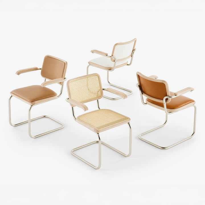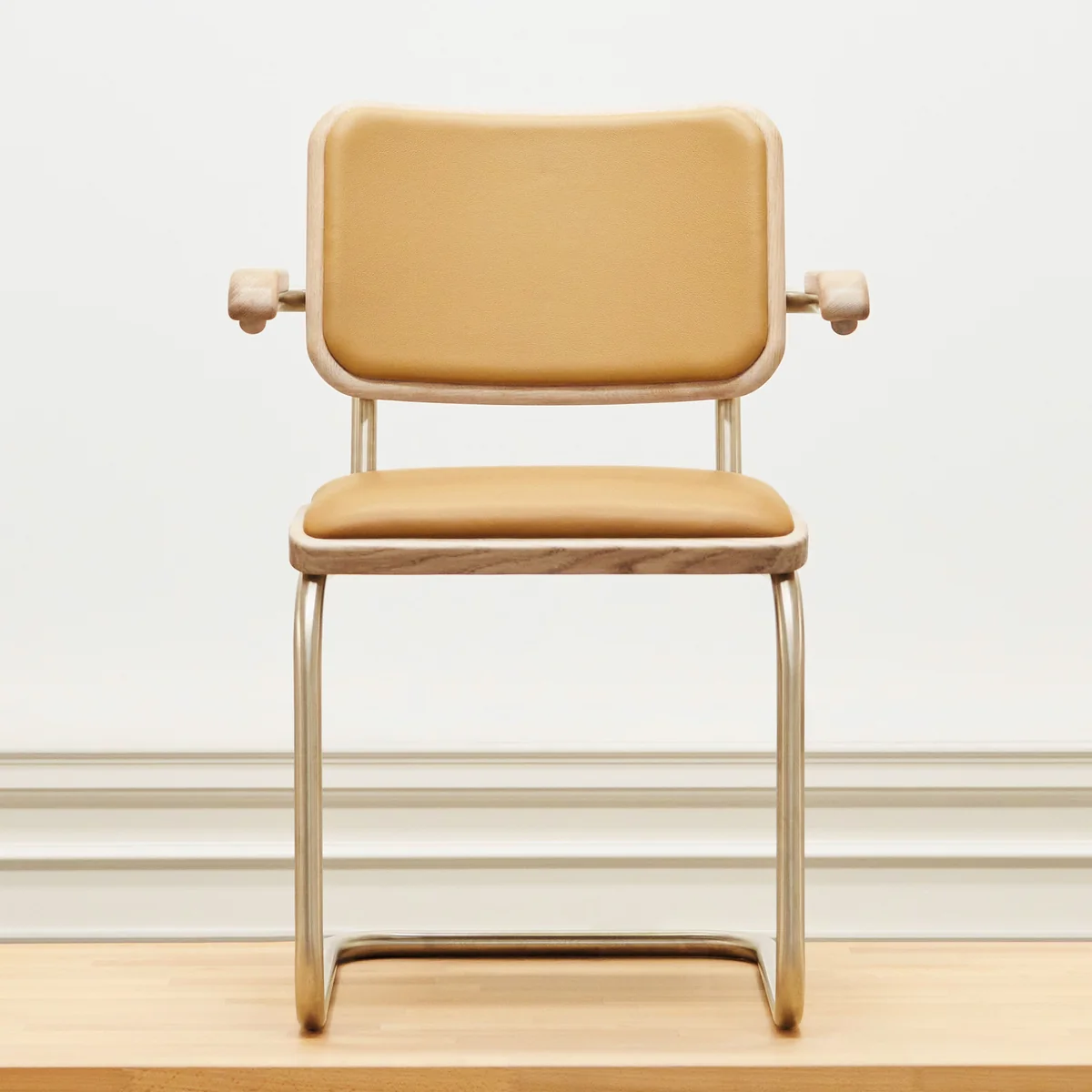 Der ikonische Freischwinger S 64 von Marcel Breuer gehört zu den bekanntesten Stahlrohr-Klassikern des 20. Jahrhunderts. Mit der Kollektion JS . THONET – A PERSONAL INTERPRETATION BY JIL SANDER erhält das Design eine zeitgemässe Neuinterpretation, die Eleganz, Handwerkskunst und raffinierte Materialkombinationen vereint.