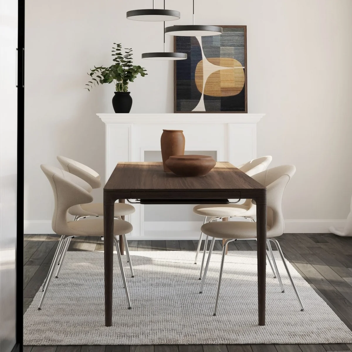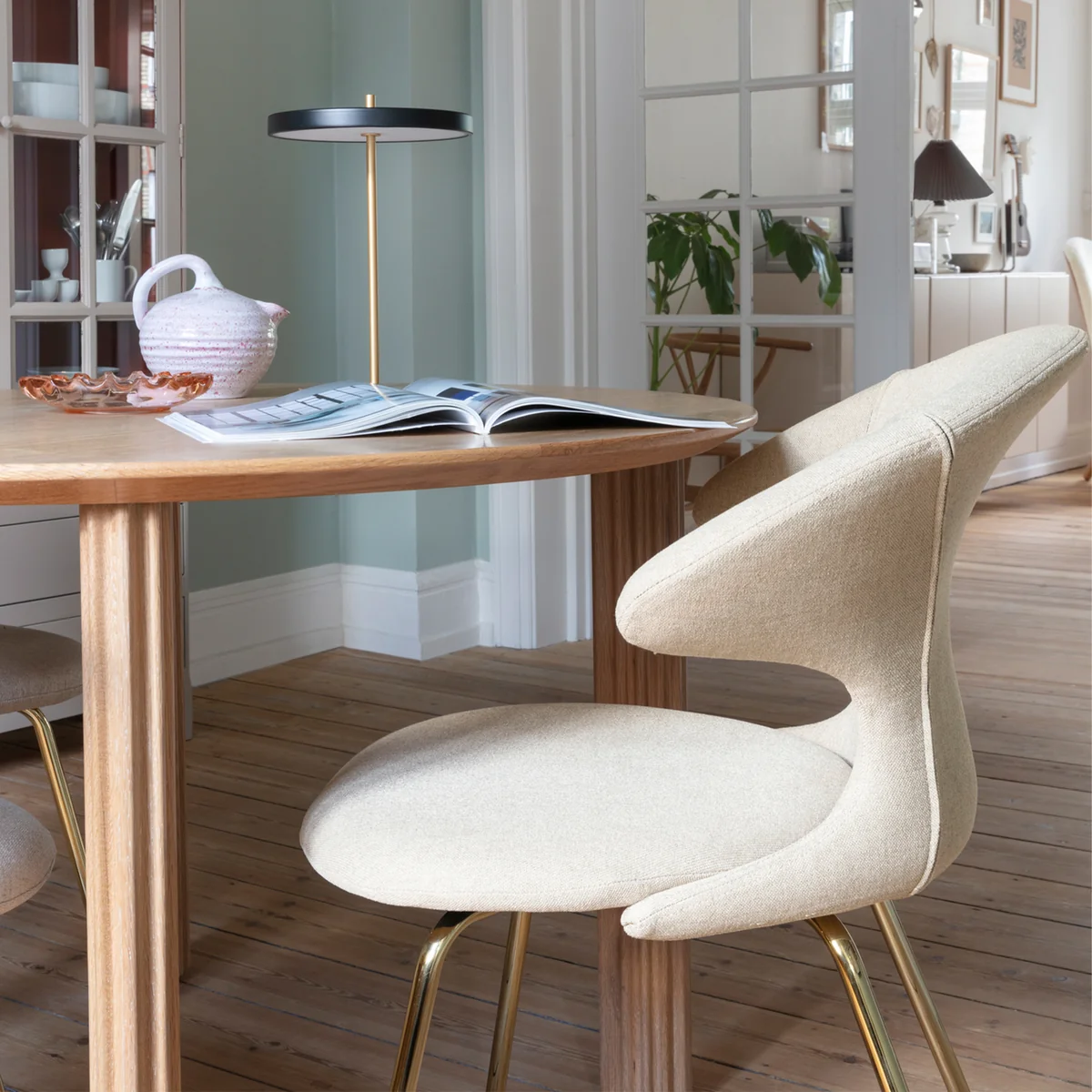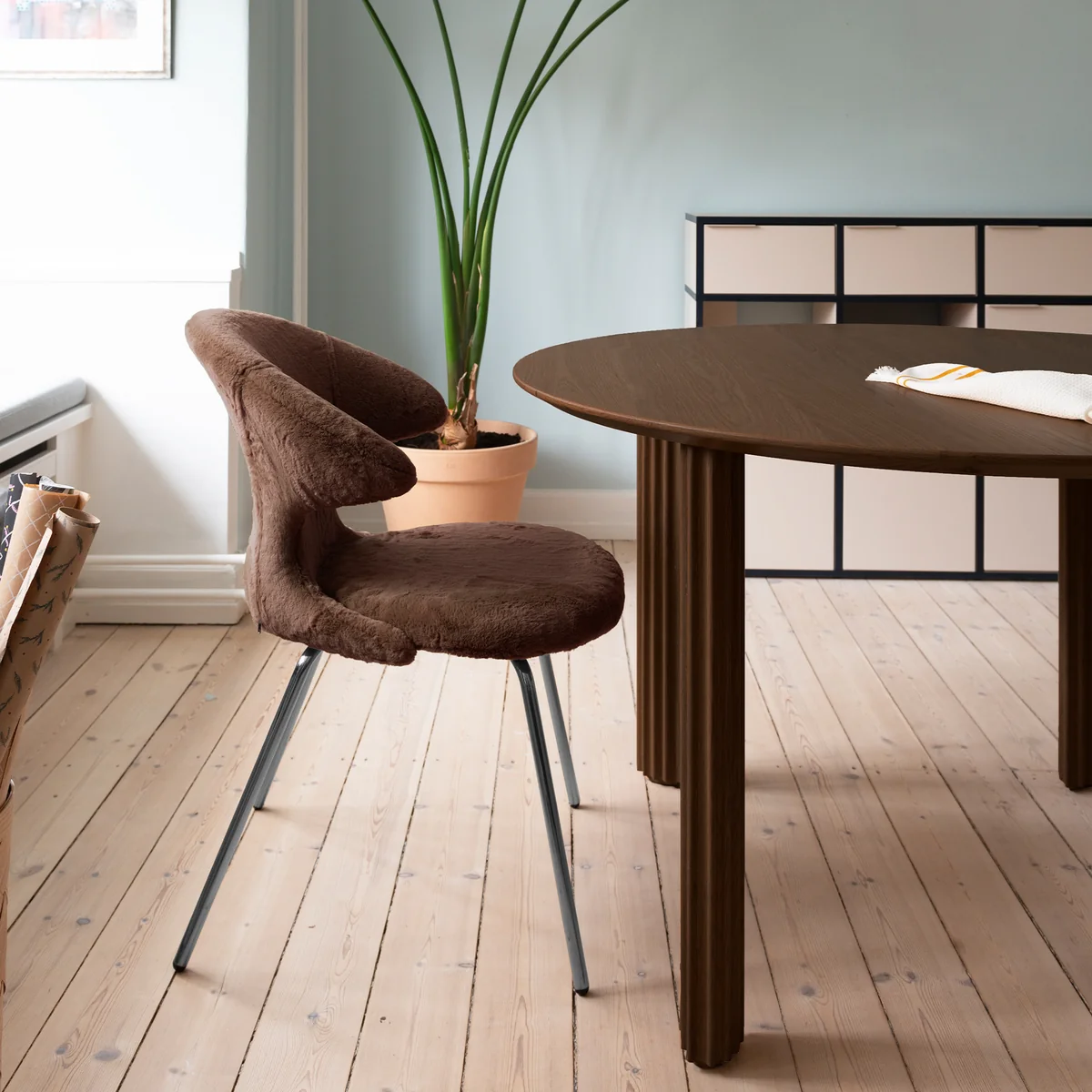 Seine gepolsterten Armlehnen umschliessen den Nutzer sanft, sodass er sich geborgen fühlt und gemütliche Stunden in dem Stuhl verbringen kann. Die Polsterung der gesamten Sitzfläche bietet einen angenehmen Komfort. Zu mehreren am Esstisch arrangiert oder einzeln als Highlight im Flur oder Schlafzimmer arrangiert, ist der von Jonas Søndergaard entworfene Time Flies Stuhl ein echter Blickfang.