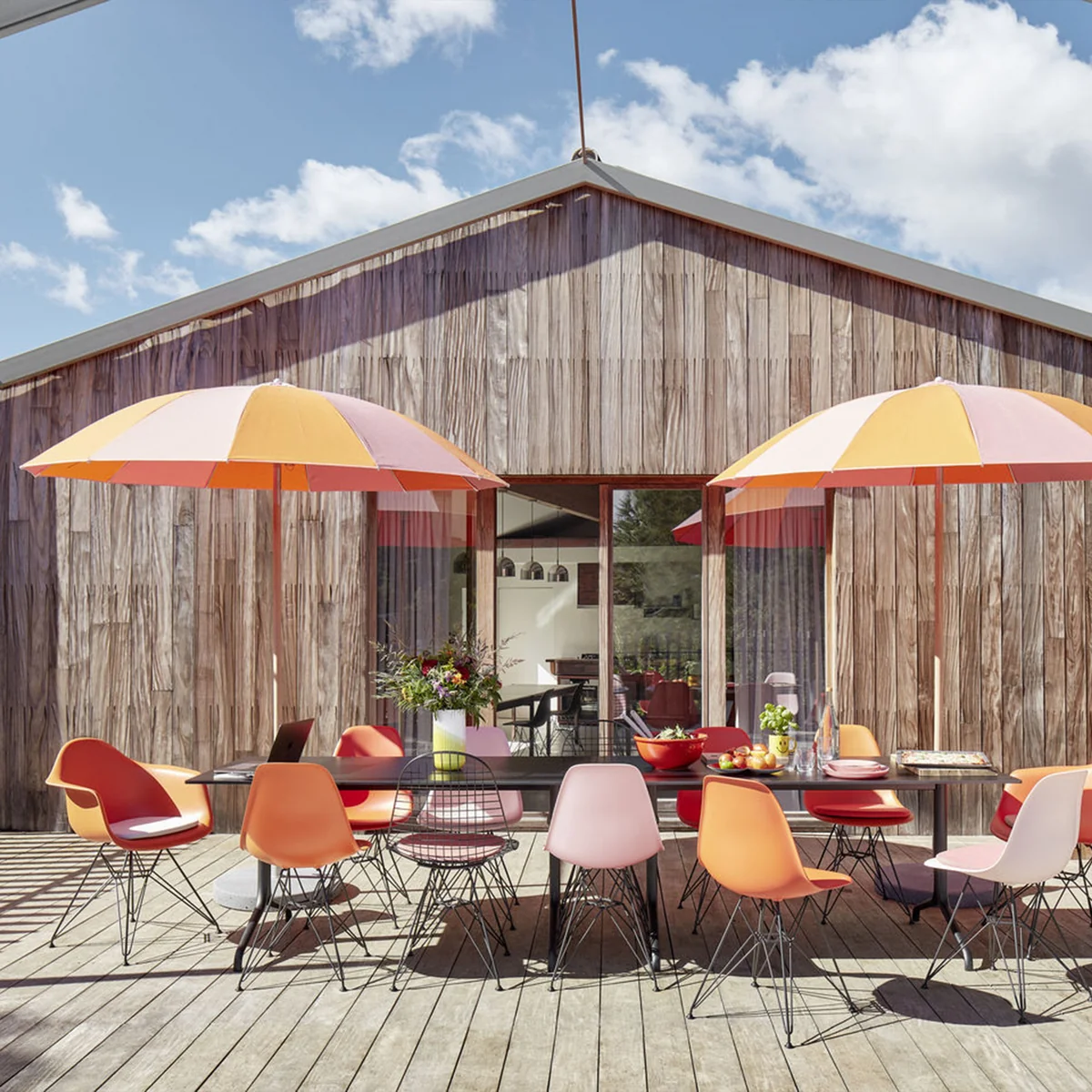 Ab 2024 werden alle Sitzschalen der Eames Plastic Chairs von Vitra aus recyceltem Post-Consumer-Kunststoff aus der deutschen Haushaltabfallsammlung «Der Gelbe Sack» hergestellt. Ausnahme: die Farbe weiss 04 wird es bis Ende 2024 aus dem bisherigen Material geben.