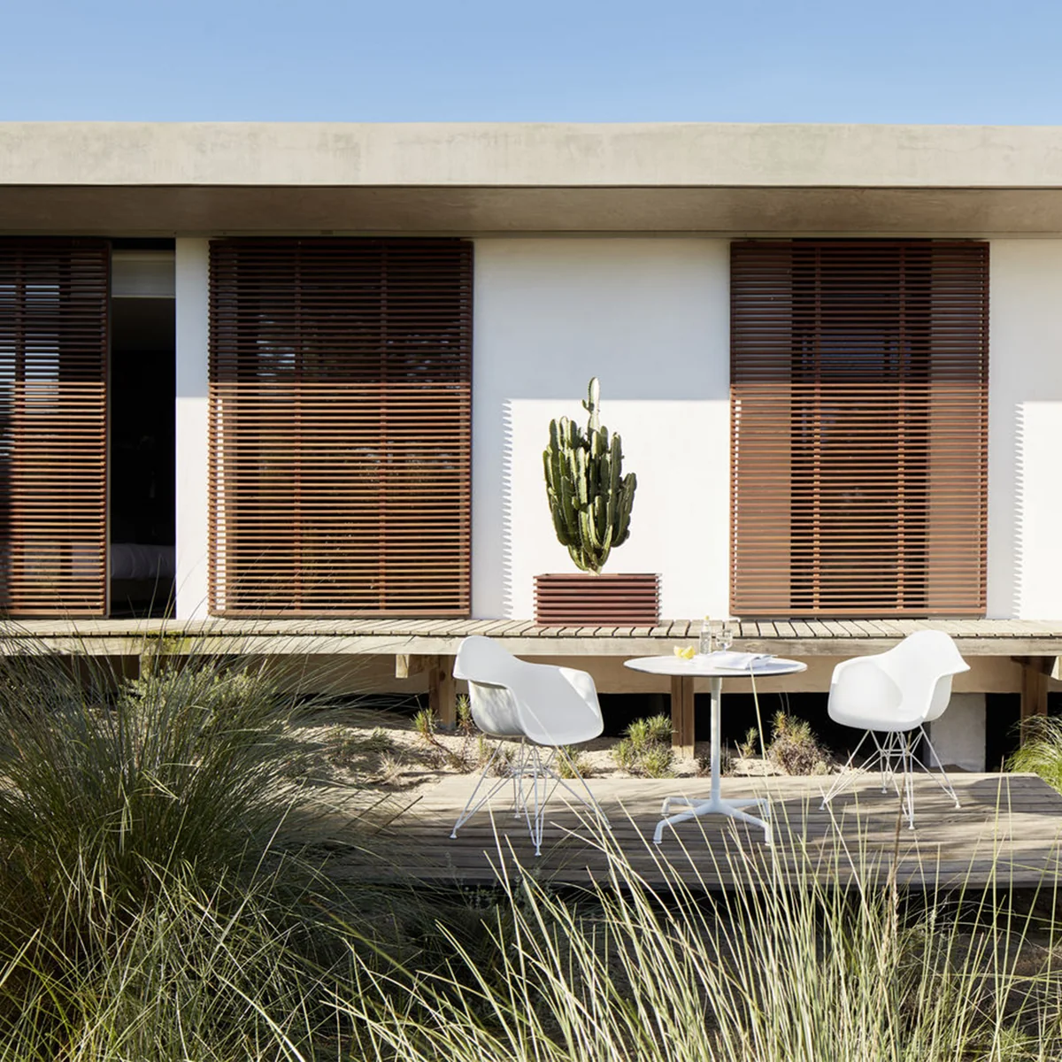 Die Plastic Armchairs, die von Charles und Ray Eames 1950 entworfen wurden, wurden erstmals im Rahmen des Wettbewerbs „Low Cost Furniture Design“ des Museum of Modern Arts in New York präsentiert. Die organisch geformte Sitzschale aus Kunststoff wurde später mit unterschiedlichen Untergestellen kombiniert und millionenfach produziert. In ihrer aktuellen Version aus Polypropylen bieten die Armchairs einen nochmals verbesserten Sitzkomfort.
