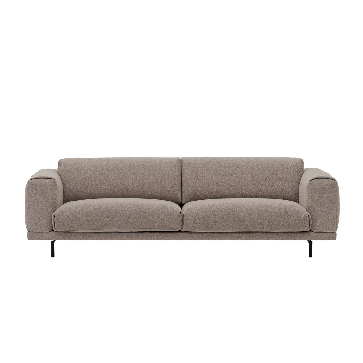 Das Rest Sofa wurde von den Designern Anderssen & Voll für das dänische Unternehmen Muuto entworfen. Durch die Kombination des schweren Körpers und des hölzernen Gestells besitzt die weiche Polsterung eine einladende und warme Erscheinung.