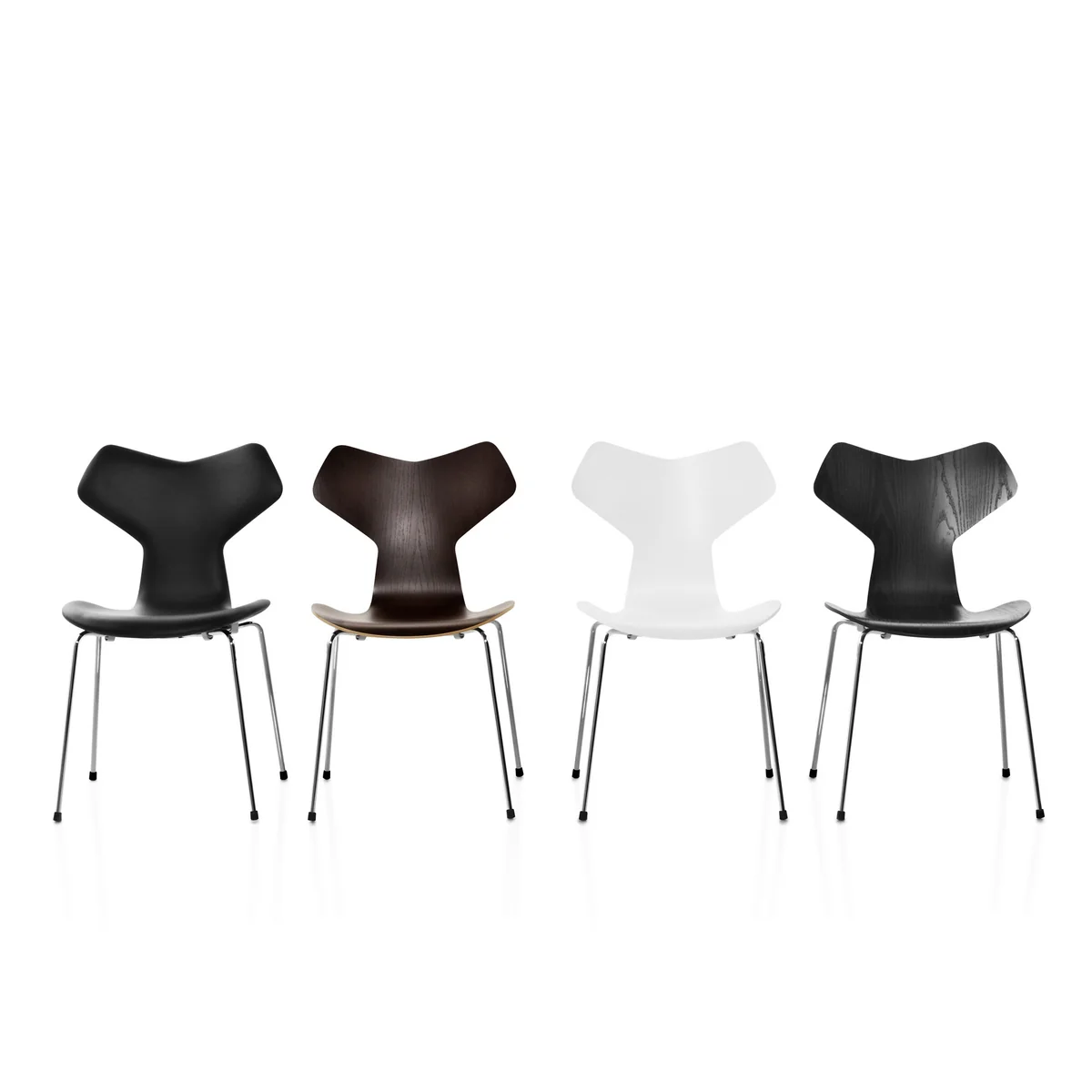 Ursprünglich wurde der Grand-Prix-Stuhl mit einem Holz- und Stahlgestell angeboten. Heute ist er standardmässig mit einem verchromten Stahlgestell erhältlich und ein idealer Mehrzweckstuhl für Kantinen, Konferenz- und Büroräume und im Wohnbereiche.