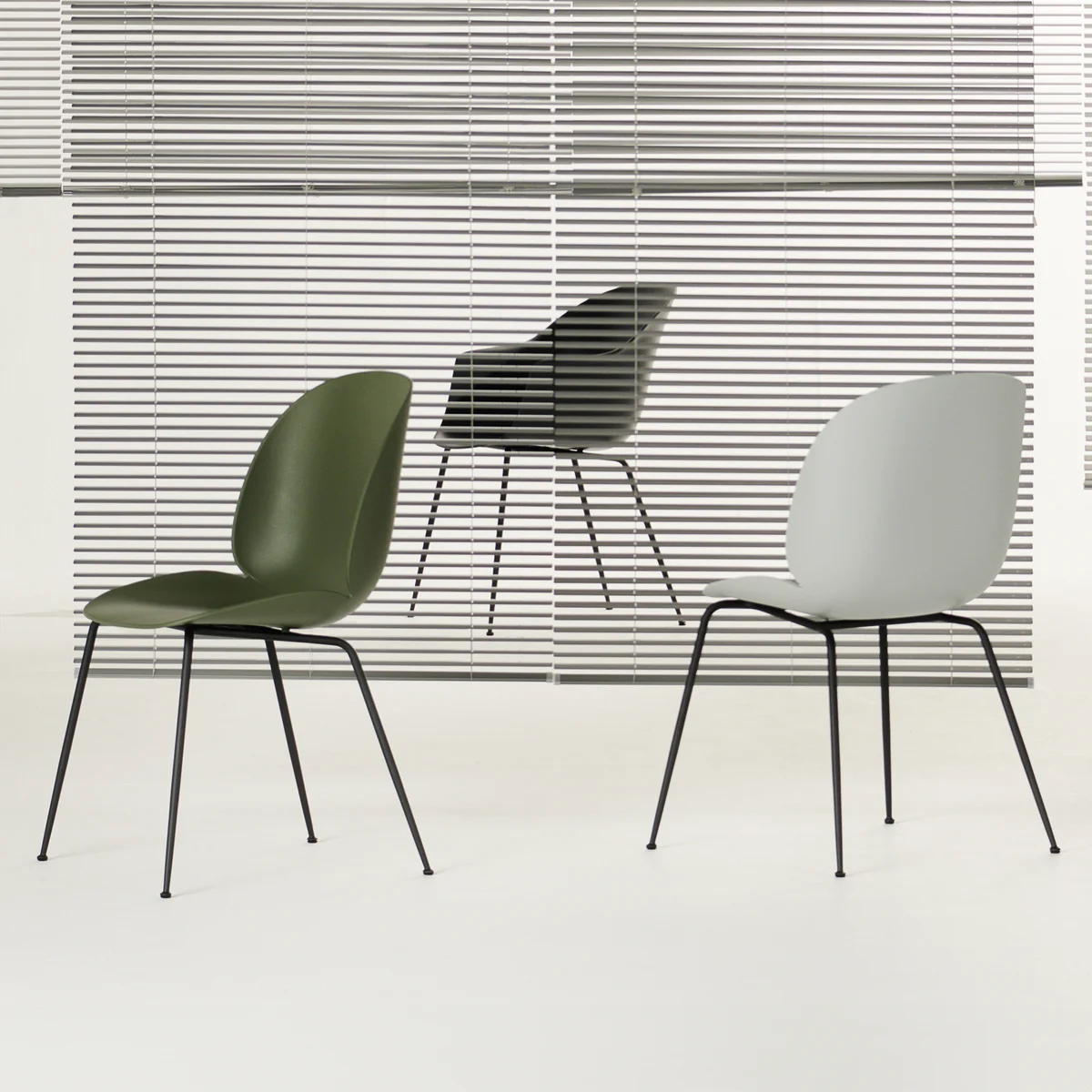 Der Beetle Dining Chair von GamFratesi für Gubi ist ein Stuhl mit unbegrenzten Möglichkeiten. Ursprünglich als gepolsterten Stuhl entworfen gibt die ungepolsterte Variante mit Schalen aus Polypropylen dem Stuhl einen leichten und frischen Ausdruck. Inspiriert wurde das Designerduo von der Insektenwelt. Die Gestaltung des Stuhls orientiert sich an den typischen Merkmalen eines Käfers (engl. beetle).