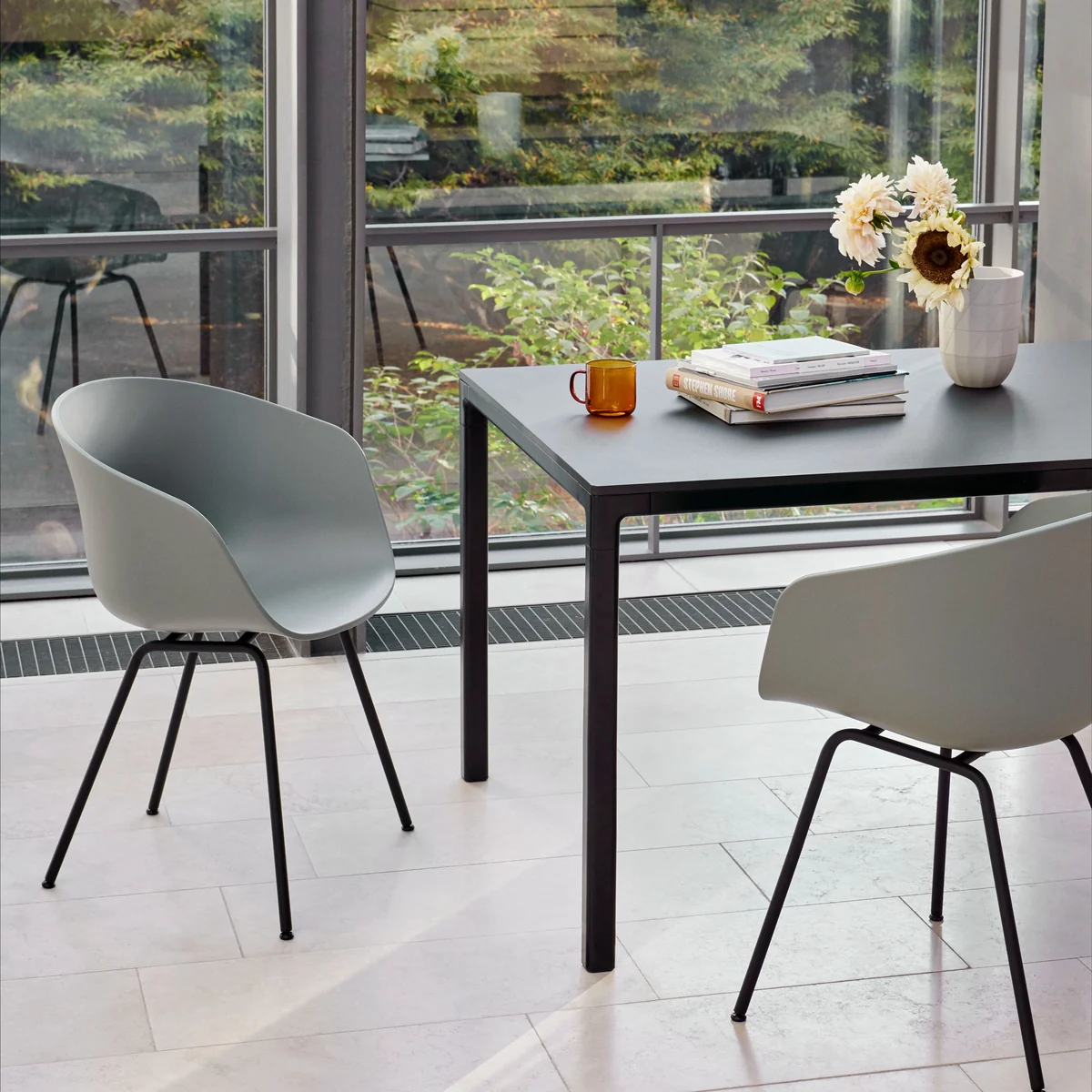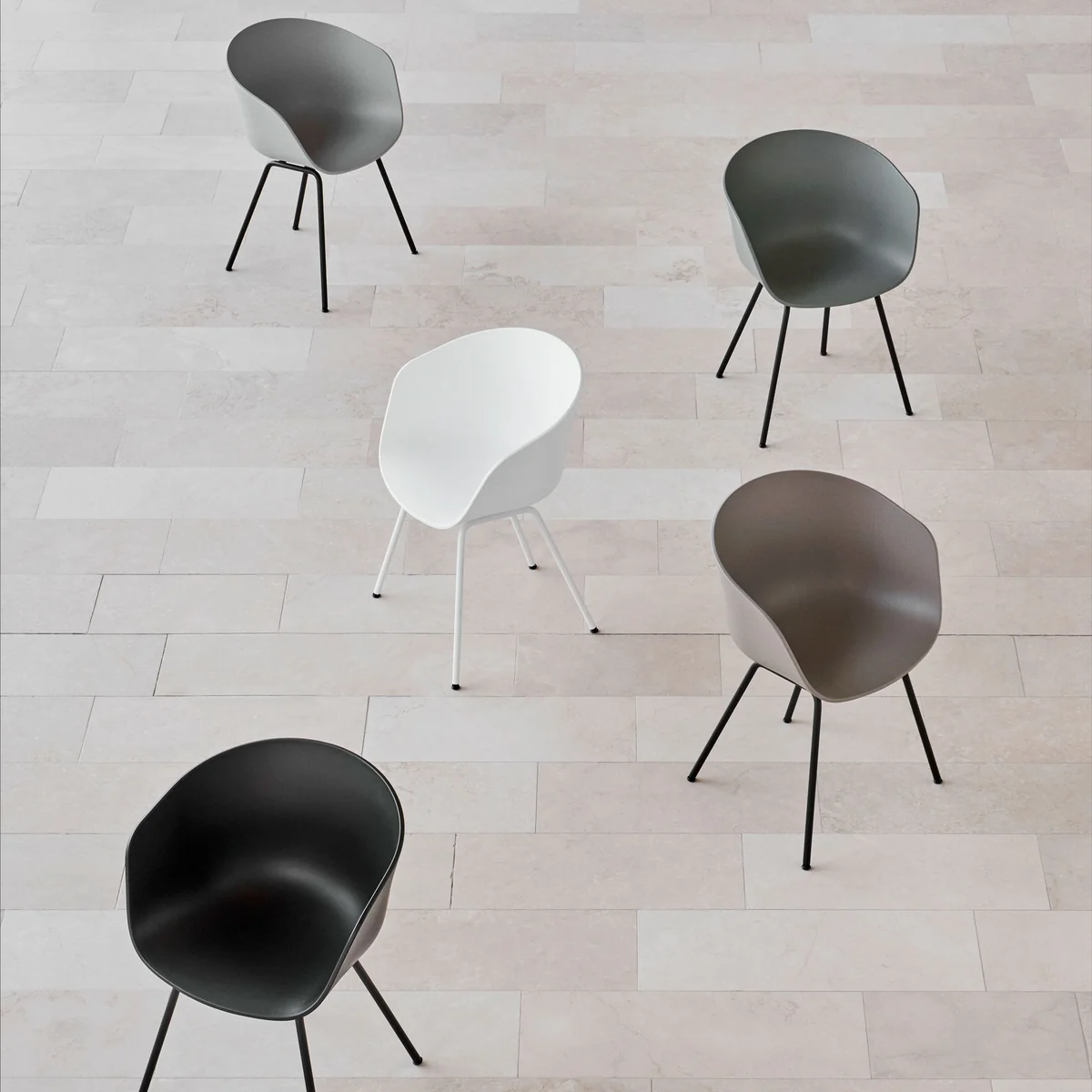 Der About A Chair AAC 26 von Hee Welling für HAY hat eine vierbeinige Basis aus poliertem oder pulverbeschichtetem Stahl, was dem Stuhl einen formaleren Ausdruck verleiht. Die Schale aus Polypropylen ist in verschiedenen Farben erhältlich.