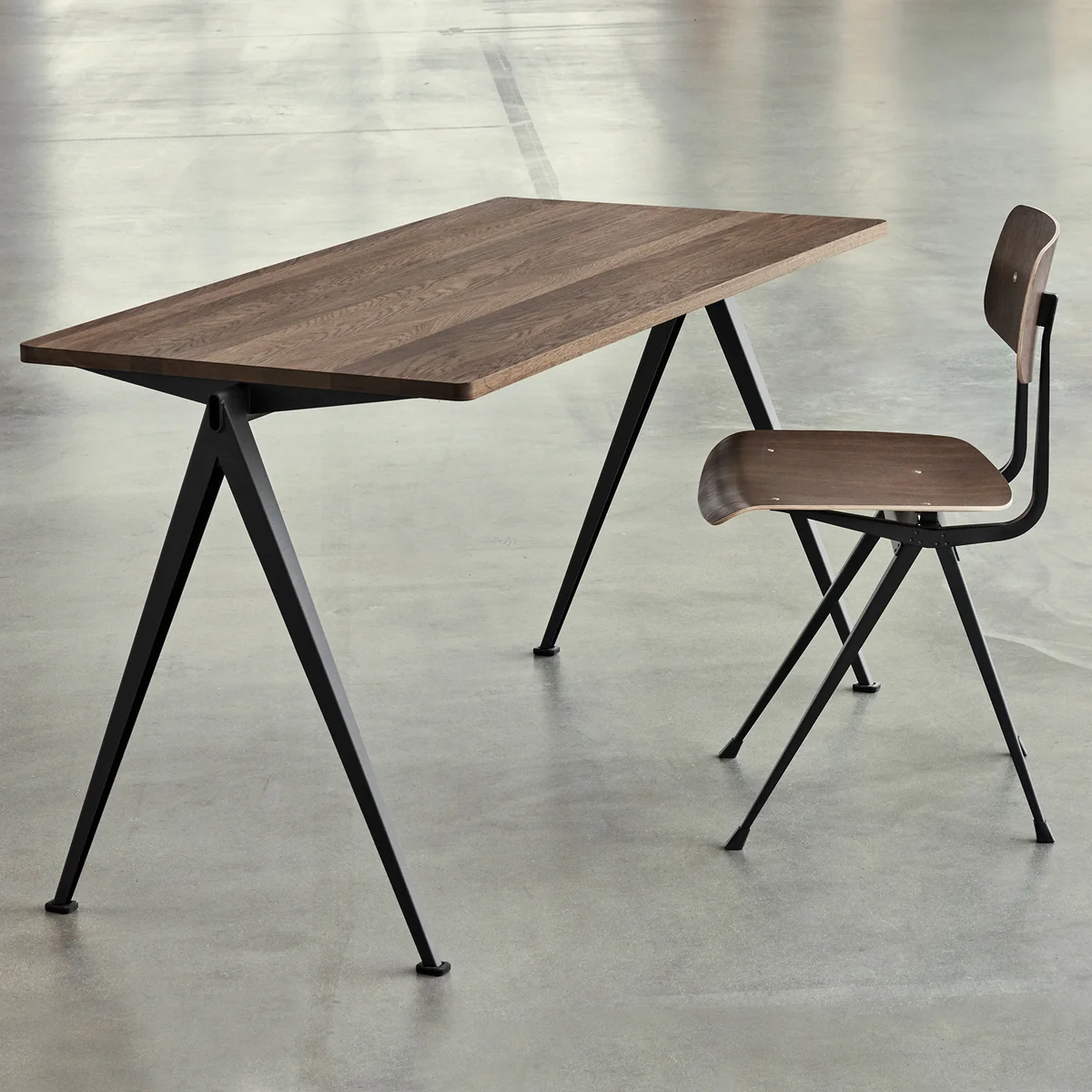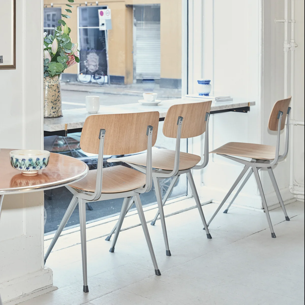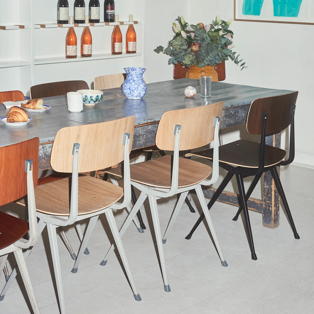 Der Result-Stuhl wurde urspünglich bereits 1958 von Friso Kramer und Wim Rietveld in den Niederlanden entworfen. Ein Jahr später folgte die passende Pyramid Kollektion. Für die Neuauflage arbeitet HAY mit Ahrend, dem ursprünglichen Hersteller der Möbel, zusammen.