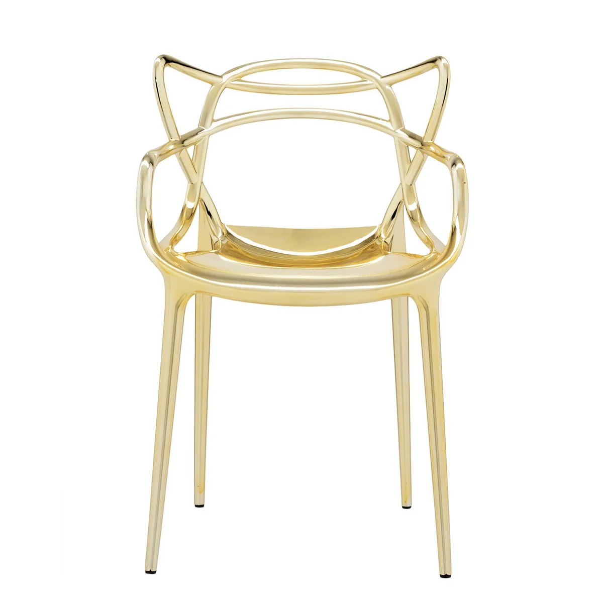 Masters vereint die Formen dreier Klassiker: Die Serie 7 von Arne Jacobsen, der Tulip Armchair von Eero Saarinen und der Eiffel Stuhl von Charles Eames wurden für den Masters räumlich und zeitlich neu interpretiert. Im Stuhl von Kartell vereinen sie sich in einem faszinierenden und ansprechenden Gemisch aus Stilen: So ansprechend, dass der Kartell Masters Stuhl 2010 mit dem Good Design Award ausgezeichnet wurde.