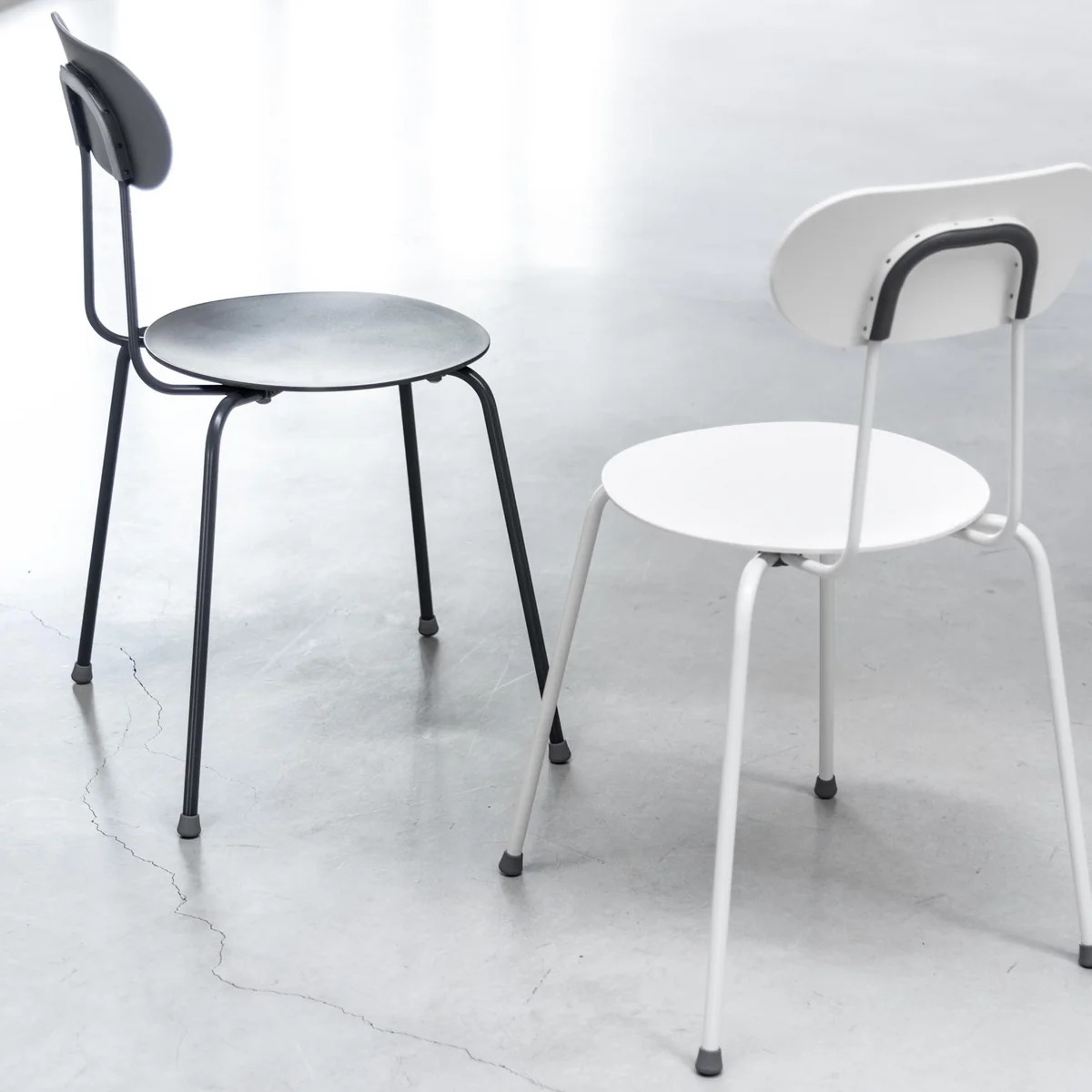 Der scheinbar einfache Stuhl im Stil der 1950er Jahre besitzt Sitz und Rückenlehnen, die nicht am Gestell mit Schrauben oder Niets befestigt werden, sondern durch eine Reihe von formgepressten Kunststoffrippen Sitz und Lehne mit dem Gestell verbinden. Die Beine sind im Vergleich zu den Stühlen aus den 50er Jahren feiner und präziser und sorgen für einen filigranen Look.