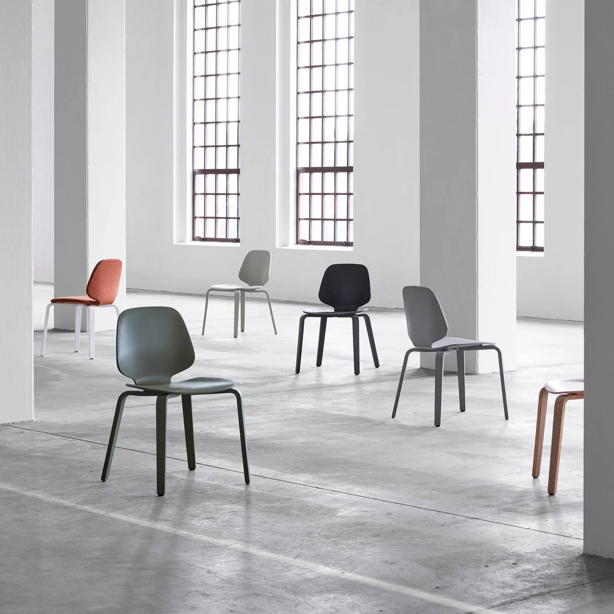 Der My Chair Wood mit einer Sitzhöhe von 45 cm ist in verschiedenen Holzarten wie Birke, Eiche oder Walnuss sowie in verschiedenen Farben erhältlich. Darüber hinaus kann My Chair in einer Vielzahl von Textilien gepolstert werden und auch ein vorderes Bezugspolster ist wählbar. Alle Modelle sind mit Beinen aus Holz, Chrom oder pulverbeschichtetem Stahl erhältlich. So passt sich der Stuhl jedem Ambiente optimal an und kann bestens mit weitere Stühlen kombiniert werden.