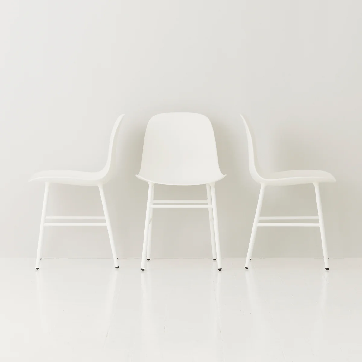 Mit der Mission, einen Schalenstuhl mit einzigartigem Design zu erschaffen, hat Simon Legald den Form Chair für Normann Copenhagen gestaltet. Um die nahtlose Optik zu erzeugen, hat Legald eine neue Methode erschaffen, um die Beine mit dem Stuhl zu verbinden: Die Sitzschale besitzt Steckverbindungen, in welche die Stahlbeine eingesteckt werden. So entsteht eine Optik mit weichen Übergängen und ohne harte Kanten - die Beine wirken fast, als würden sie aus dem Stuhl wachsen.