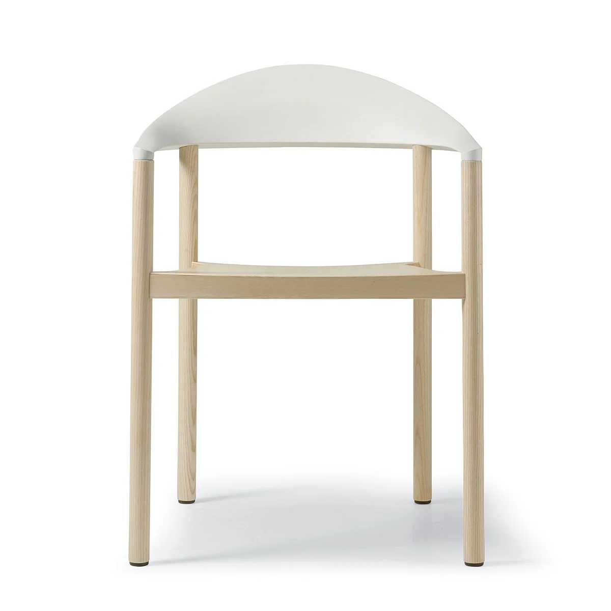 Dem Armlehnenstuhl Monza liegt eine reduzierte Holzkonstruktion zugrunde, die sich formal an die Typologie skandinavischer Holzstühle anlehnt. Sein Charakter wird durch den Kunststoffaufsatz definiert, der einerseits für die Stabilität der Konstruktion sorgt und darüber hinaus dem Stuhl Komfort sowie Farbigkeit verleiht.