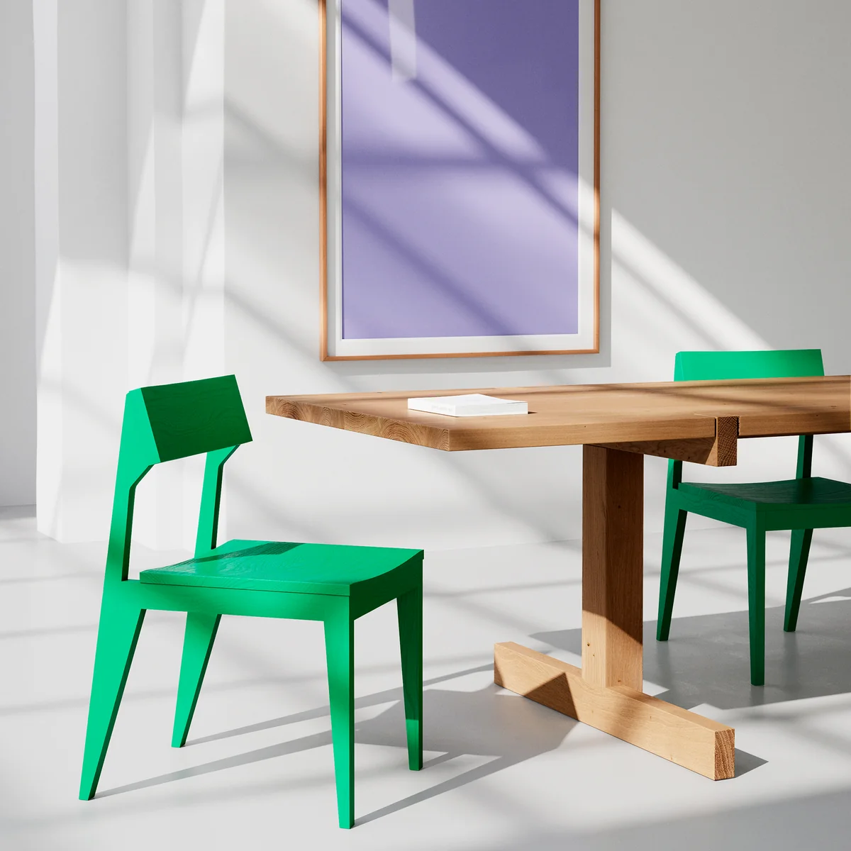 Erhältlich ist der Schulz Stuhl in verschiedenen Holzvarianten, sowie lackierten Versionen, die sich auch toll miteinander kombinieren lassen.