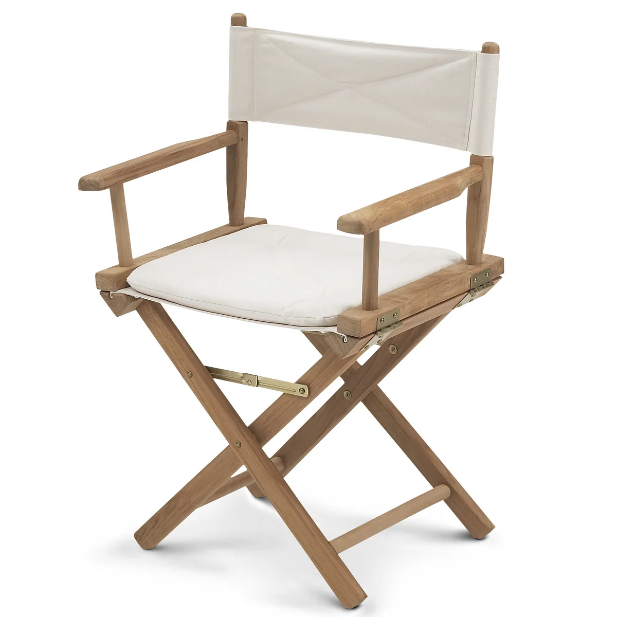 Der Regiestuhl von Skagerak besteht aus einer einfachen Holzkonstruktion, über die ein Texteline-Bezug (Polyester-Gittergewebe mit PVC-Vinyl) oder eine Bezug aus Canvas gespannt ist. Durch das einfache Design verbreitet der Director’s Chair eine rustikale Aura und bietet gleichzeitig ungeahnten Sitzkomfort.