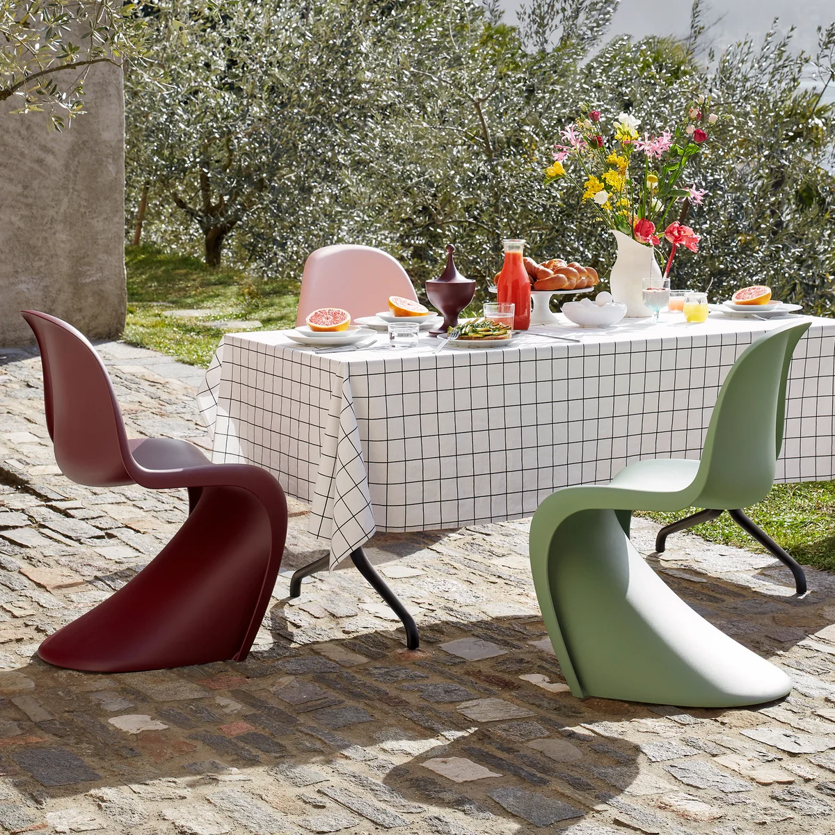 Der Panton Chair ist ein Designklassiker-Stuhl von Verner Panton aus den 60er Jahren. Der Freischwinger aus Kunststoff wurde 2021 aktualisiert, sodass er ab sofort in neuen Farben sowie einer angepassten Sitzhöhe von 44 cm erhältlich ist und damit noch komfortabler. Neu sind auch die bereits integrierten Gleiter, die ein Zerkratzen der Bodenfläche verhindern