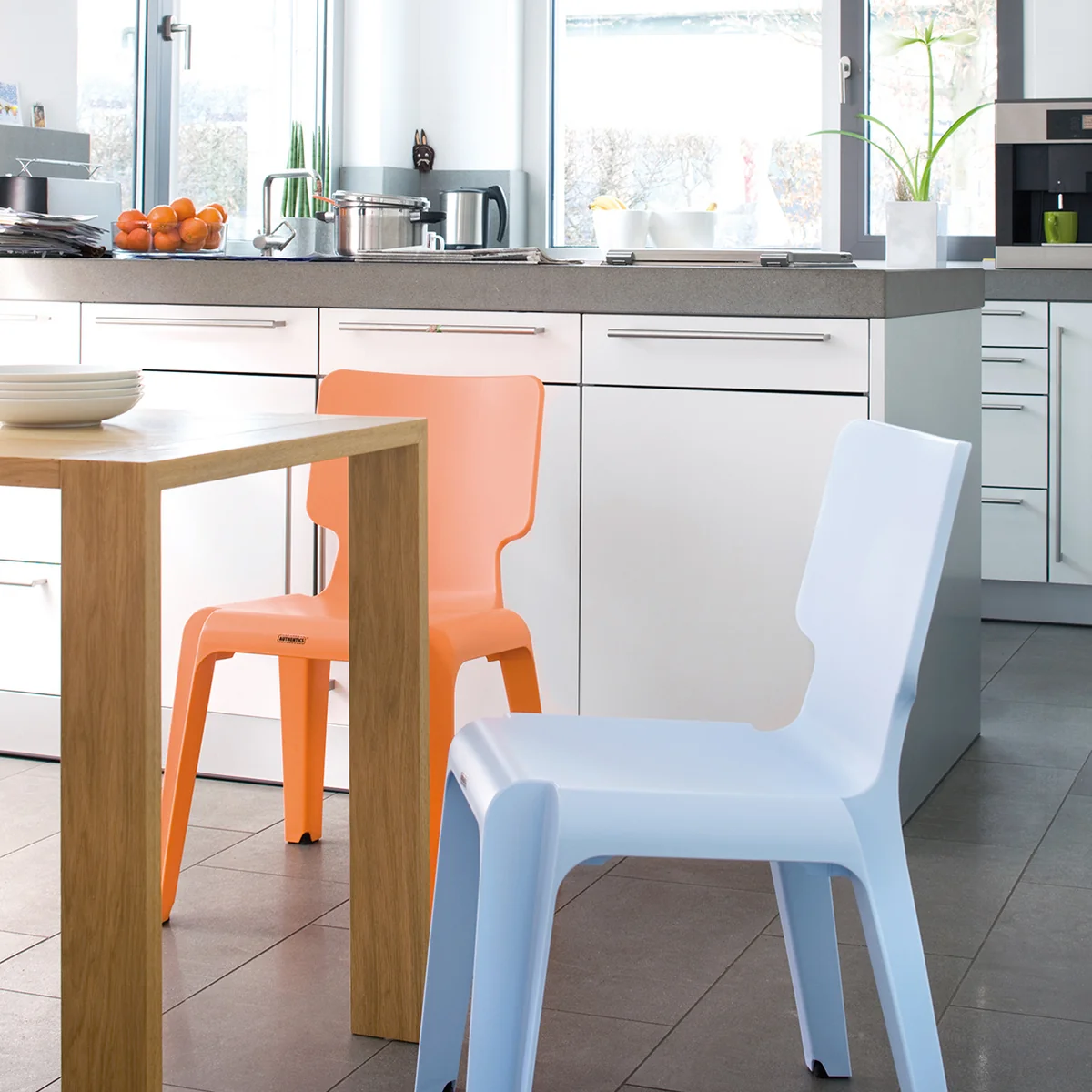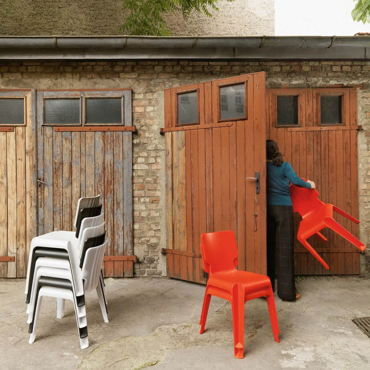 Wait ist ein schlichtes und klassisches Sitzmöbel aus Kunststoff, das bewusst auf modische Avantgarde verzichtet. Er ist stapelbar, pflegeleicht, robust und alles andere als ein Wegstellmöbel. Bei dem Stuhl aus Vollkunststoff wurde besonderer Wert auf hohen Sitzkomfort gelegt. Er ist in verschiedenen bunten Farben erhältlich und kann flexibel im Haus, wie auch im Aussenbereich eingesetzt werden.