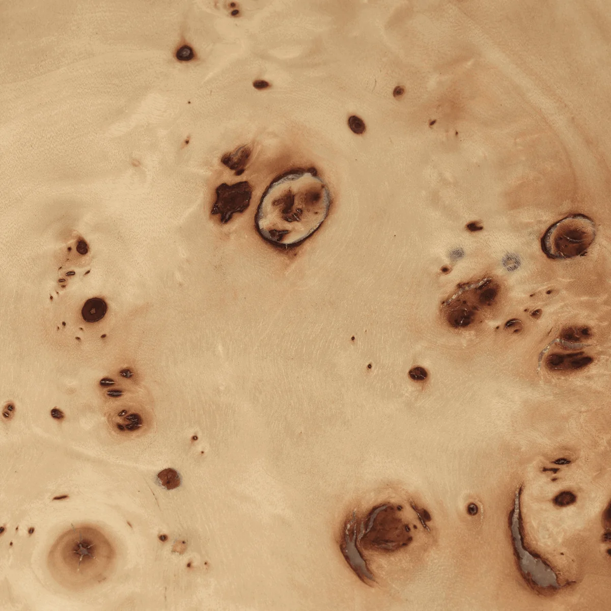 Die klare Linienführung des Tisches in Verbindung mit der natürlichen Unregelmässigkeit des Burl-Holzes schafft ein minimalistisches und dennoch auffälliges Design. Der Tisch wird so zu einem kunstvollen Mittelpunkt in dem Wohnzimmer.