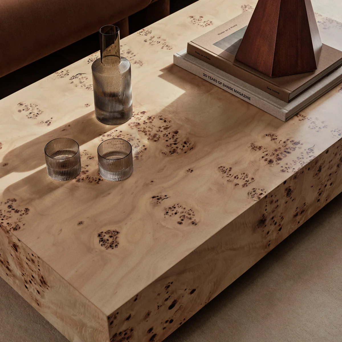 Der Burl Coffee Table von Ferm Living präsentiert eine Tischplatte aus Burl-Holz, das für seine unverwechselbaren Maserungen und organischen Formen bekannt ist. Jede Tischplatte ist ein Unikat und unterstreicht die Schönheit der Natur.
