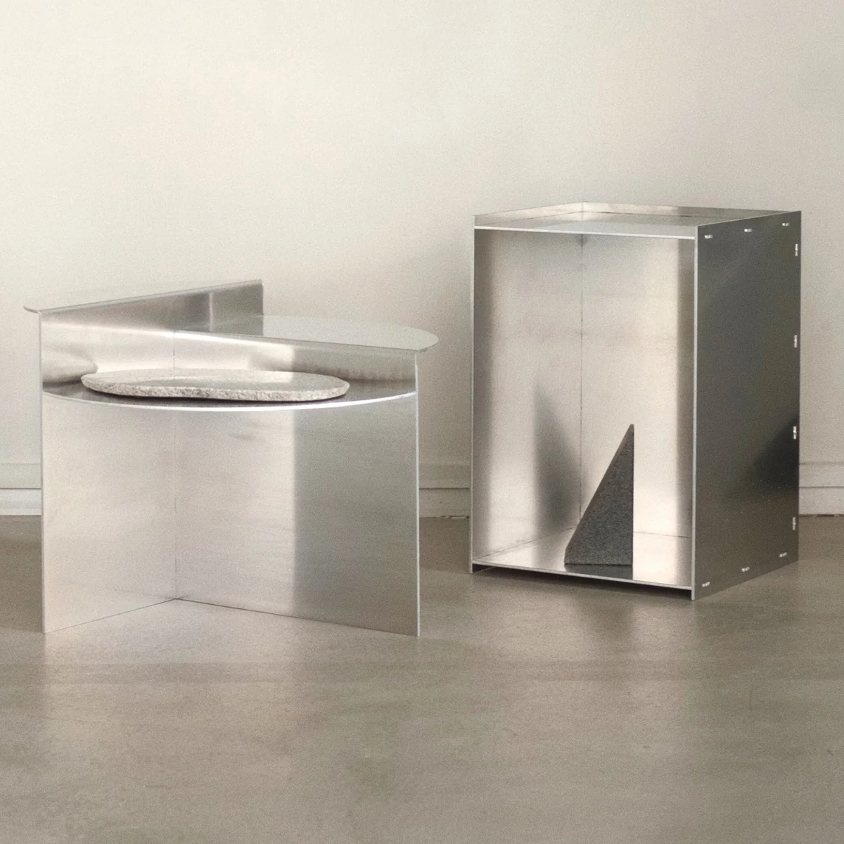 Hergestellt wird der Rivet Beistelltisch aus Laser-geschnittenen Aluminiumplatten, die anschliessend gehämmert werden.