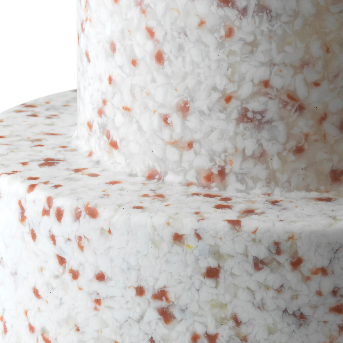 Das Bit Multifunktionsmöbel von Normann Copenhagen kann mit seinem skulpturalen Design vielfältig genutzt werden. Unter anderem als kleiner Beistelltisch für Blumen und Tischlampen, oder als Hocker für spontane Gäste. Der Designer Simon Legald lies sich von unvergänglichen Formen wie Monolithen oder Säulen inspirieren. Die klare Formensprache von Bit steht im Kontrast zu der einzigartigen, pixelartigen Oberfläche, die aus 100 % recyceltem Kunststoff besteht.