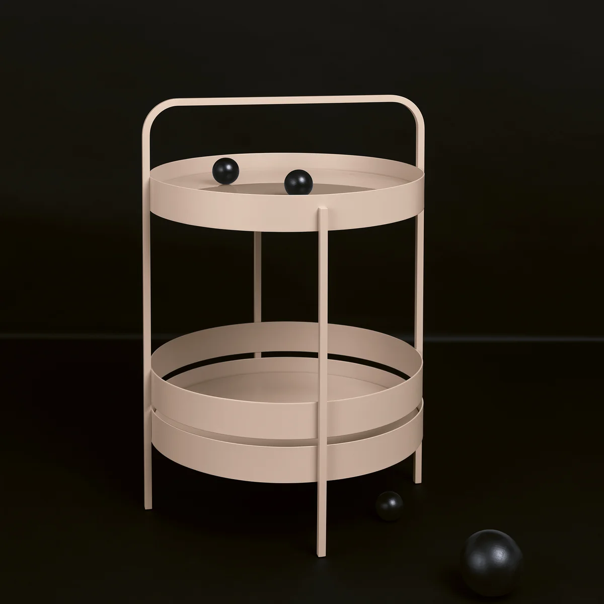Der Beistelltisch wird aus pulverbeschichtetem Stahl hergestellt und ist in verschiedenen Farben erhältlich. So fügt sich der zeitlose Tisch gut in jedes Raumambiente ein. Zwei Ablageflächen bieten genügend Platz für Bücher, Schatullen, Vasen und vieles mehr. Die obere Ablage mit praktischem Tragegriff wird dabei aus Glas hergestellt und ist jeweils farblich passend rückseitig lackiert. Neben dem Bett oder dem Sofa platziert, ist Albert ein echter Blickfang.