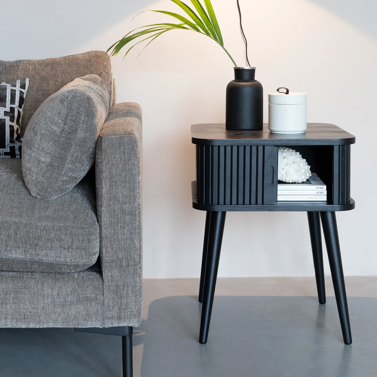Der Barbier Beistelltisch von Zuiver ist der Beweis dafür, dass gutes Design keine Grösse braucht. Mit seiner runden Form, dem edlen Echtholzfurnier und den typischen, fein gerillten Schiebetüren bringt er skandinavischen Charme und praktische Raffinesse in jeden Raum. Ob neben dem Sofa, als Nachttisch oder stilvoller Ablagetisch – Barbier passt sich mühelos jeder Wohnsituation an.