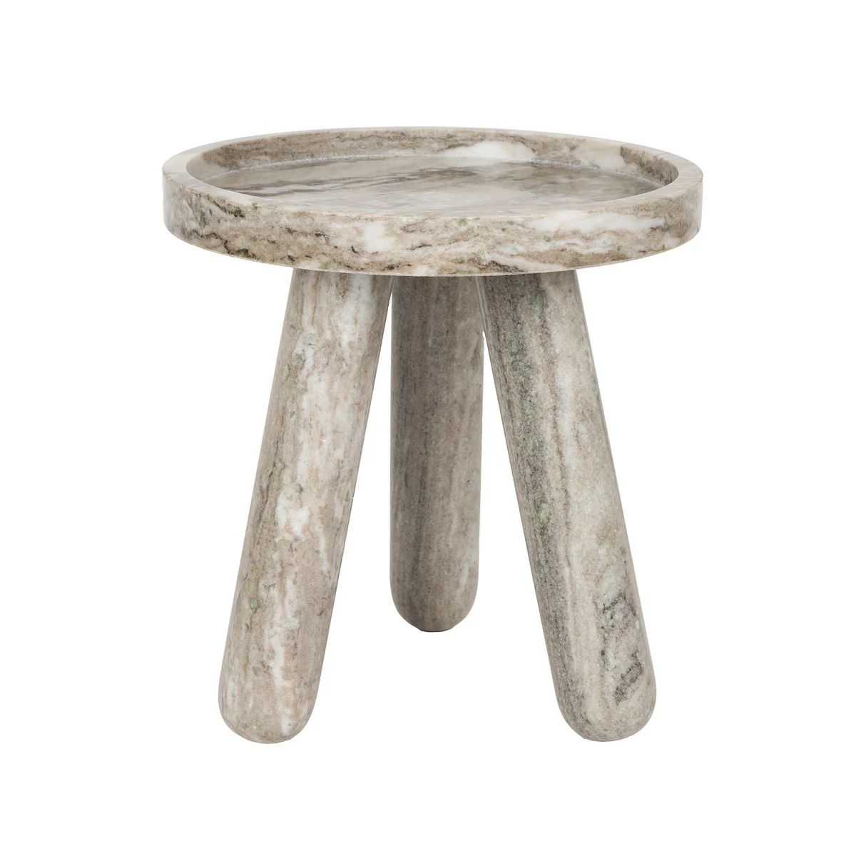 Der Cosmopolitan Beistelltisch von Zuiver kombiniert zeitlose Eleganz mit funktionalem Design. Die runde Tischplatte aus massivem braunem Marmor verleiht dem Möbelstück eine edle, klassische Ausstrahlung und macht es zu einem stilvollen Blickfang in jedem Raum. Drei stabile Standbeine sorgen für sicheren Halt und unterstreichen die hochwertige Verarbeitung.