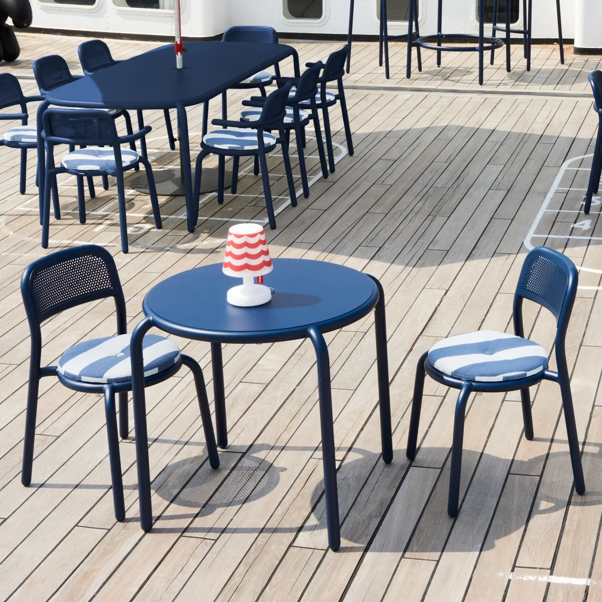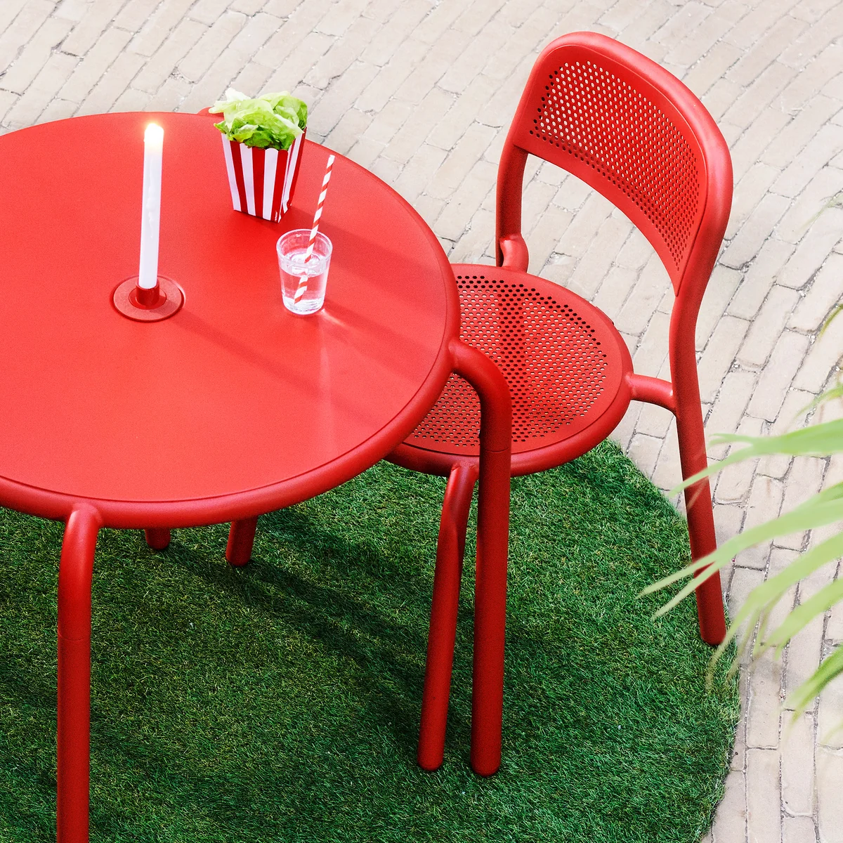 Der runde Toní Bistreau Tisch von Fatboy ist ein idealer Begleiter auf der Terrasse, auf dem Balkon, im Garten oder auch im Innenbereich. Der praktische Einlass (41 mm) bietet die Möglichkeit den passenden Fatboy - Stripesol Sonnenschirm einzulassen. So kann man das Essen ganz bequem im Schatten geniessen. Aber auch ohne Schirm ist der Fatboy Bistreau Tisch ein Blickfang. Der praktische Sonnenschirmeinlass lässt sich in dem Fall einfach mit dem Stöpsel verschliessen oder mit dem dekorativen Kerzenhalter stilvoll in Szene setzen.