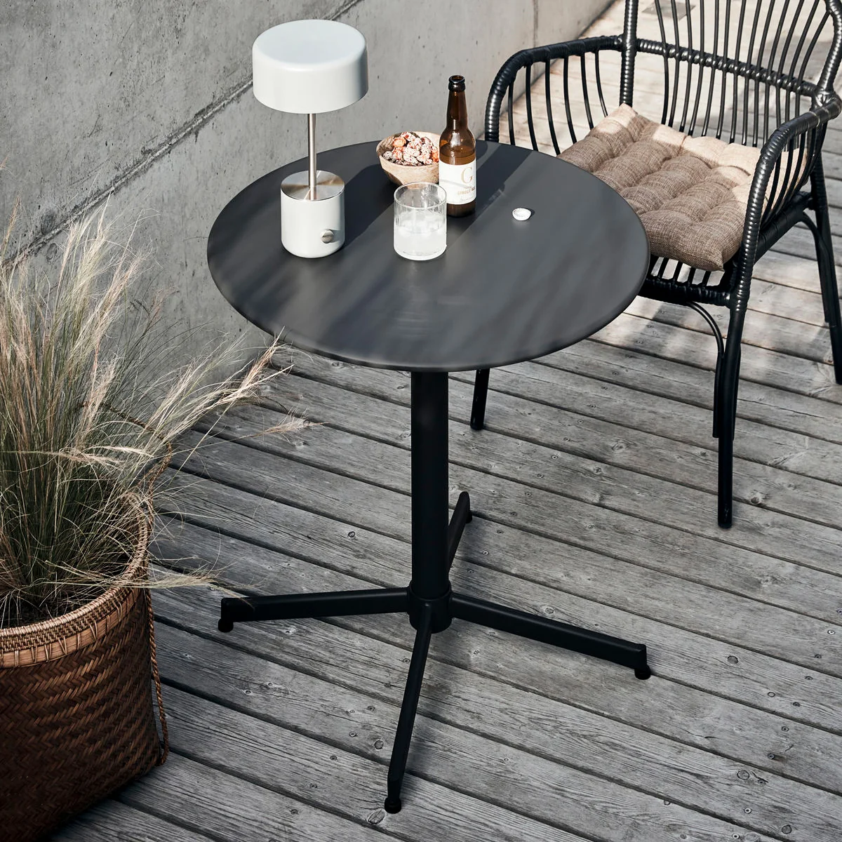 Der Eisentisch wurde mit einer matten Pulverbeschichtung überzogen, um ein zeitloses Design zu schaffen, das zu jedem Interior-Style passt. Auf engem Raum kann die Tischplatte einfach hochgeklappt werden, um Platz zu sparen, wenn der Tisch gerade nicht gebraucht wird. Um den Sitzbereich perfekt abzurunden, kann der Bistrotisch mit Stühlen und dekorativen Elementen verziert werden und erhält somit einen ganz persönlichen Touch.