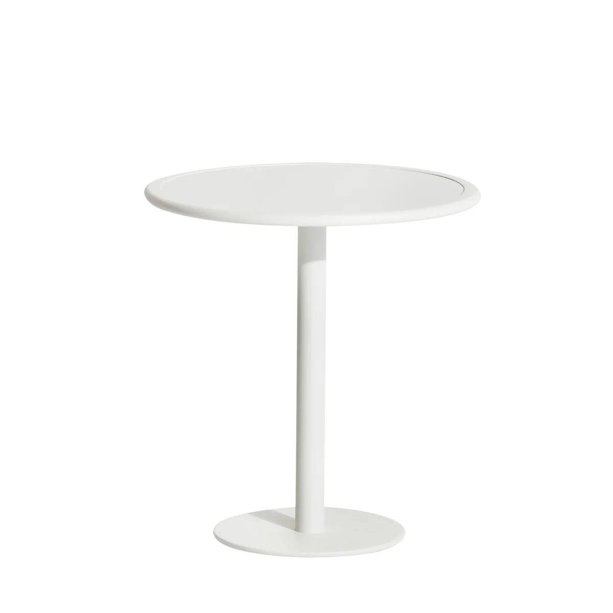 Der Week-End Bistrotisch Outdoor von Petite Friture hat den Look eines klassischen Bistrotisches, wurde aber mit noch mehr Praktikabilität im Sinn entworfen. Hergestellt aus Aluminium wird er mit einer UV-beständigen Epoxidbeschichtung versehen, die sich sowohl gegen Wasser als auch gegen ausbleichende UV-Strahlen wehrt. Darüber hinaus verfügt der runde Tisch über einen leichten Rand an der Tischplatte, sodass Gläser und Teller nicht herunterrutschen können.