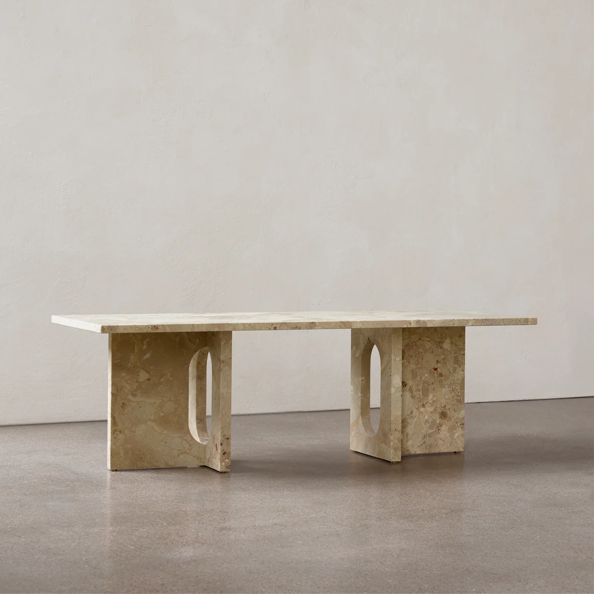Der Androgyne Lounge Table von Audo fügt sich hervorragend in jeden Lounge Bereich ein und sorgt für einen echten Blickfang im Ambiente. Aus Kunis Breccia-Stein gefertigt, erhält der Tisch durch die Maserung eine natürliche Erscheinung und wirkt aufgrund seiner markanten Form dennoch charakteristisch. Die Kombination aus runden und geraden Formen macht Tisch zu einem stilvollen Möbelstück mit starkem Ausdruck. Eleganz und kraftvoll, männlich und weiblich gleichermassen - das Wesen des Tisches ist seine Dualität.