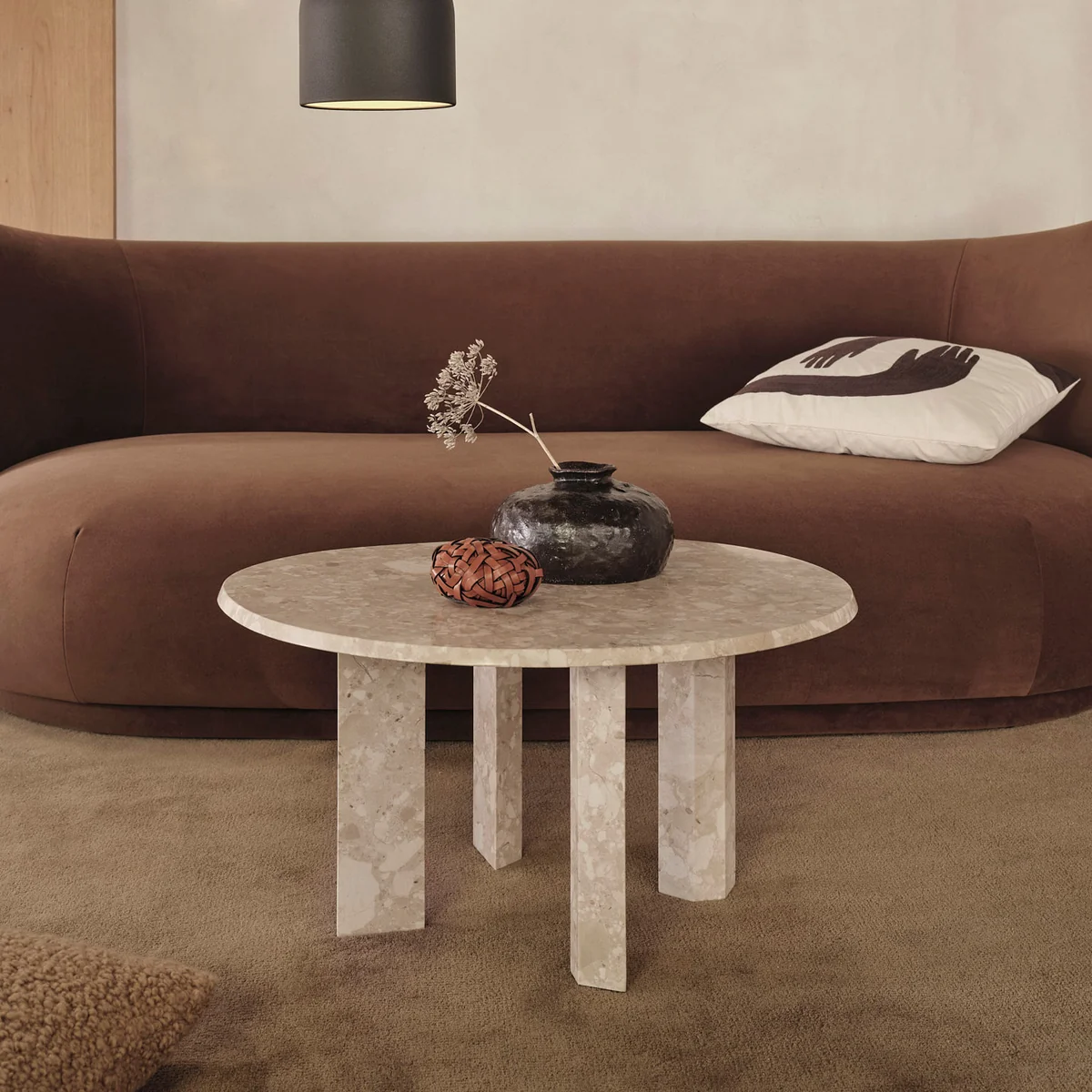 Der Taula Couchtisch von Ferm Living ist eine elegante und luxuriöse Ergänzung für jedes Wohnzimmer. Gefertigt aus edlem Marmor, zeichnet sich der Tisch durch seine geschmackvolle Ästhetik und aussergewöhnliche Stabilität aus. Die sanften, natürlichen Farbnuancen des Marmors bringen eine warme, raffinierte Note in den Raum und ergänzen moderne sowie klassische Einrichtungsstile. Die geschmackvolle Schlichtheit des Designs hebt die einzigartige Maserung des Marmors hervor, während die solide Konstruktion für eine langlebige Nutzung sorgt. Der Taula Couchtisch ist nicht nur funktional, sondern auch ein zeitloser Blickfang in Ihrer Wohnlandschaft.