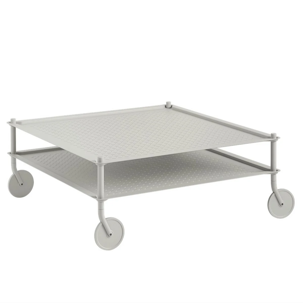 Der Flow Couchtisch von Muuto ist ein funktionaler Beistellwagen, der modernes Design mit praktischer Flexibilität vereint. Die gerillte Ablage aus geprägt-matter Stahl verleiht ihm einen zeitgenössischen Look, während die praktischen Rollen es ermöglichen, den Tisch mühelos von Raum zu Raum zu bewegen. Der Flow Beistellwagen ist vielseitig einsetzbar und passt sich flexibel Ihren Bedürfnissen an – sei es als Geschirrwagen im Esszimmer, als Bücherregal im Wohnzimmer oder zur Aufbewahrung von Boxen und Kartons. Hergestellt aus pulverbeschichtetem Stahl, ist der Flow Couchtisch in verschiedenen Farben erhältlich und fügt sich stilvoll in jede Einrichtung ein.