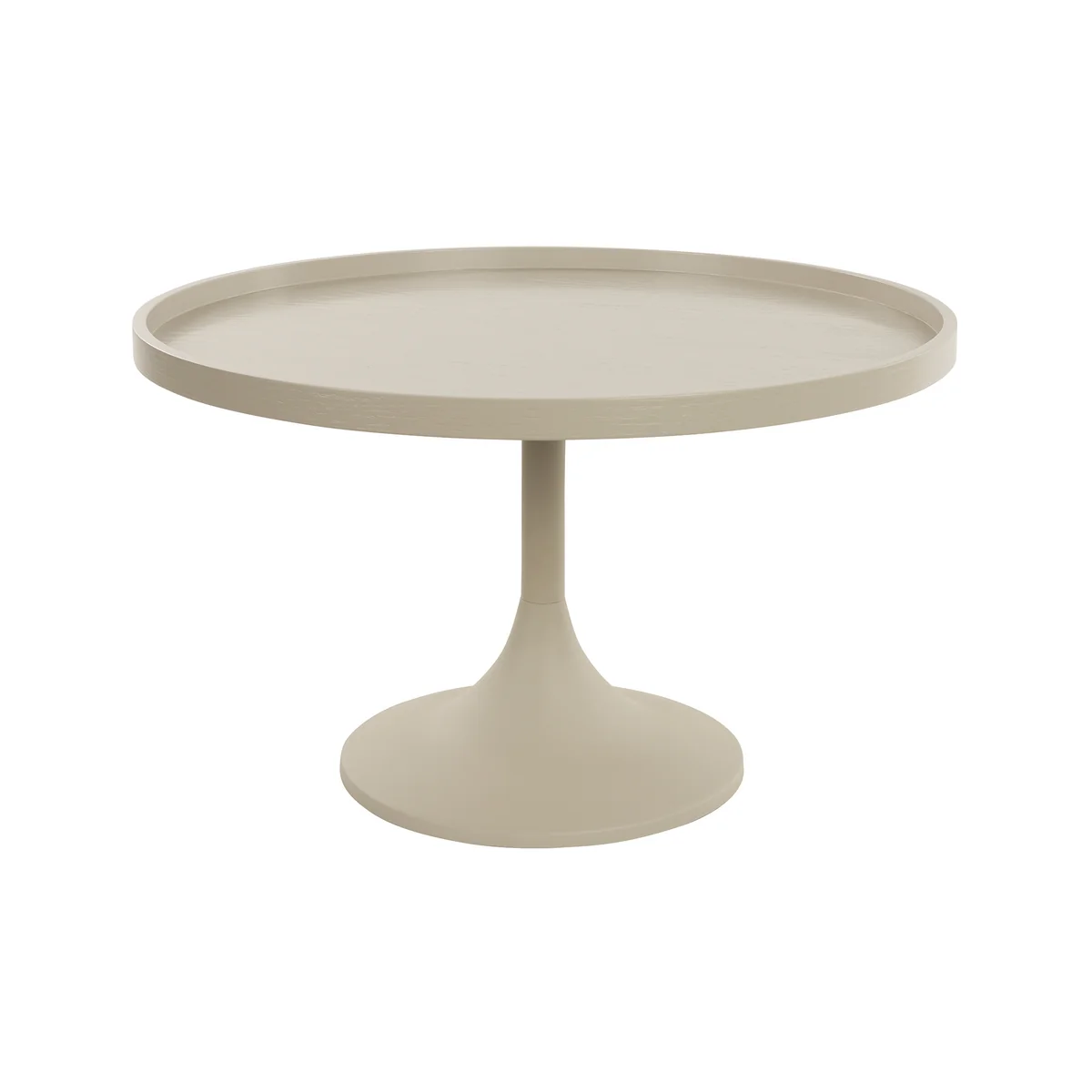 Die leicht erhöhte Kante verleiht dem Tisch nicht nur visuelle Tiefe, sondern verhindert auch das Abrutschen von Gegenständen – funktional und elegant zugleich. Durch seine einbeinige Konstruktion bleibt der Tisch optisch leicht und sorgt für ein luftiges Raumgefühl. In Kombination mit dem kleineren Jason Side Table entsteht ein stilvolles, ineinander schiebbares Duo mit grafischer Präsenz.
