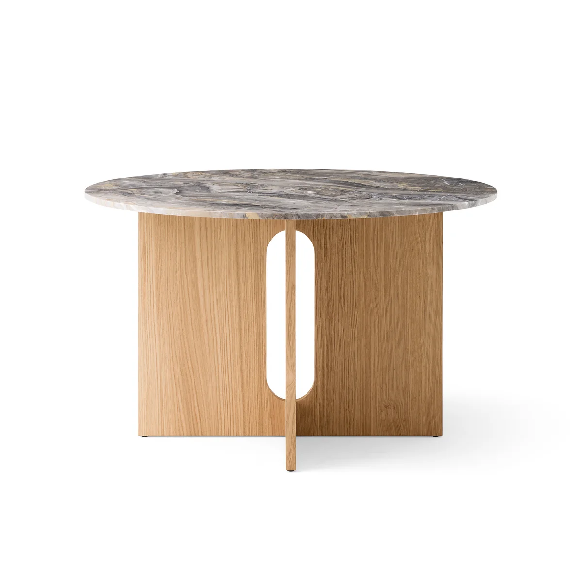 Wie ein prachtvolles Monument verbindet der Androgyne Esstisch von Audo auf eindrucksvolle Weise natürliche Materialien. Als Weiterentwicklung der Androgyne Kollektion verhilft er der Silhouette des Couchtisches zu grösseren Proportionen.