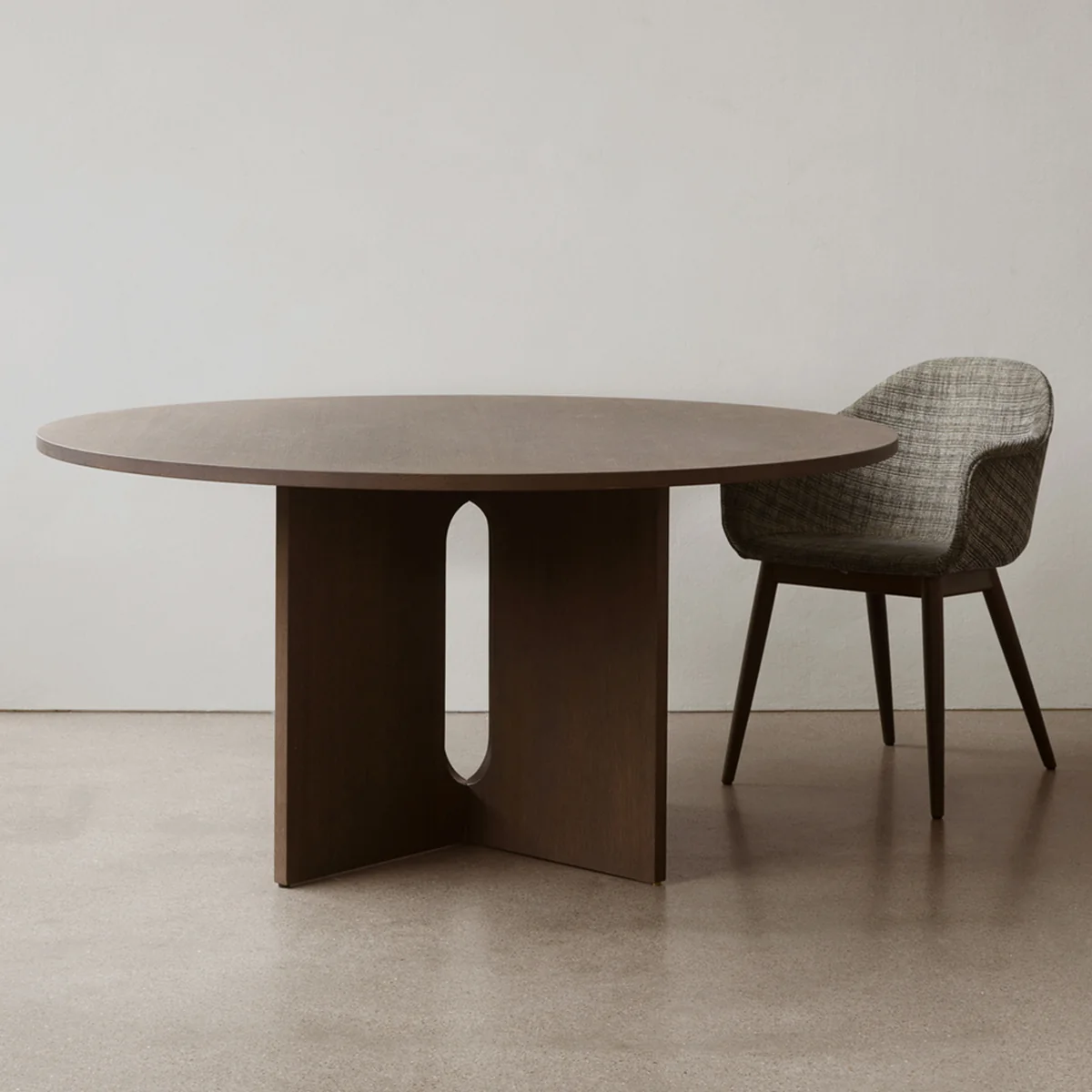 Der Androgyne Tisch von Audo ist ein Entwurf von Danielle Siggerud und zeichnet sich durch seine skulpturale Gestalt aus. Die Auswahl natürlicher Materialien wie Eichenholz und Sandstein hat eine auffällige Wirkung, während die Form charakteristische Akzente setzt. Die Kombination aus runden und geraden Linien sorgt für einen spannungsreichen Kontrast und macht den Tisch zu einem besonderen Möbelstück im Ambiente. Eleganz und kraftvoll, männlich und weiblich gleichermassen - das Wesen des Tisches ist seine Dualität.