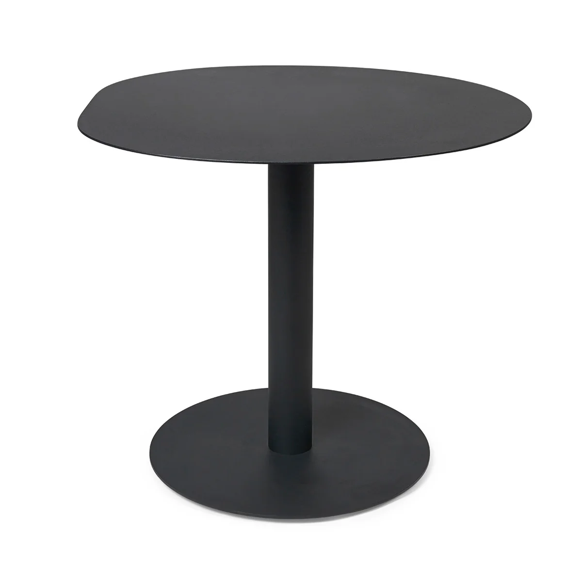 Bringen Sie mit dem Pond Dining Table ein ruhiges Element in Ihren Innen- oder Aussenbereich. Mit einer organisch geformten Tischplatte, die einen unregelmässigen, unvollkommenen Kreis bildet, wird der Tisch durch eine einzelne, diskrete Säule an der Basis ergänzt. Der Pond Dining Table ist komplett aus robustem, pulverbeschichtetem, verzinktem Stahl gefertigt und mit verstellbaren Füssen ausgestattet, die es ermöglichen, die Bodenplatte auf unebenen Flächen auszurichten. Er ist ideal für den Einsatz auf dem Balkon, der Terrasse oder in der Küche. Der Tisch wird flach verpackt geliefert.