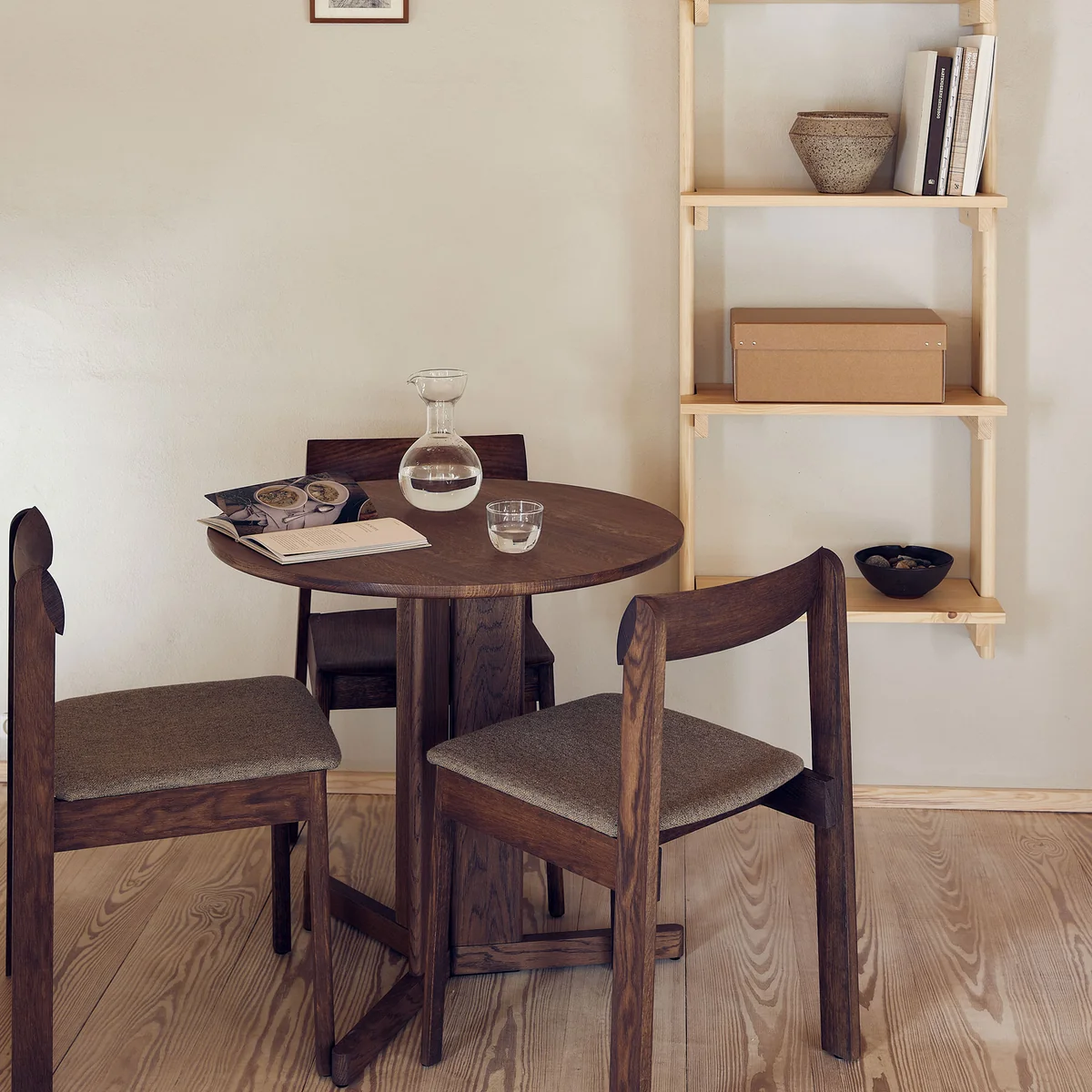 Der Trefoil Tisch von Form & Refine ist ein einzigartiger Rundtisch aus Holz. Drei solide Fuss-Elemente laufen unter der Tischplatte zusammen und bilden einen geschmackvollen Kontrast zwischen Leichtigkeit und Dichte. Dieses optisch komplexe Design wird vom wunderbar skandinavischen Look komplettiert. Der Trefoil Tisch eignet sich als Esstisch, im Wohnzimmer, der Küche oder dem Büro. Besonders clever: Durch das platzsparende Design haben alle Personen am Tisch ausreichend Beinfreiheit. Das Design stammt vom dänischer Designer-Duo Herman Studio.