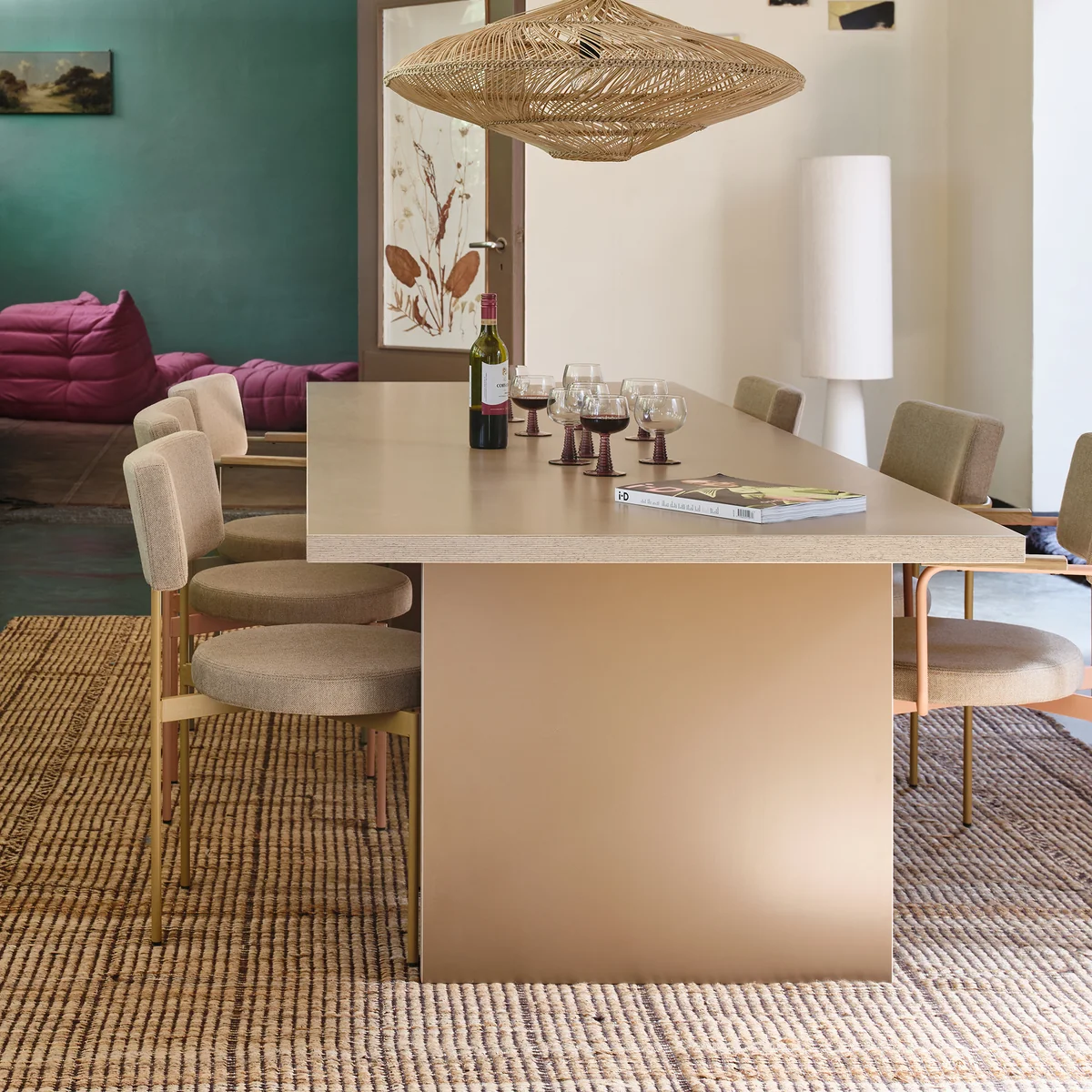 Der Esstisch aus dem niederländischen Hause HKliving bringt die gesamte Familie zusammen. Er ist in unterschiedlichen Grössen und Farben erhältlich. Das zeitlose Designobjekt wird aus 70% Eorolight, 22% MDF, 7% HPL und 1% Metall gefertigt.
