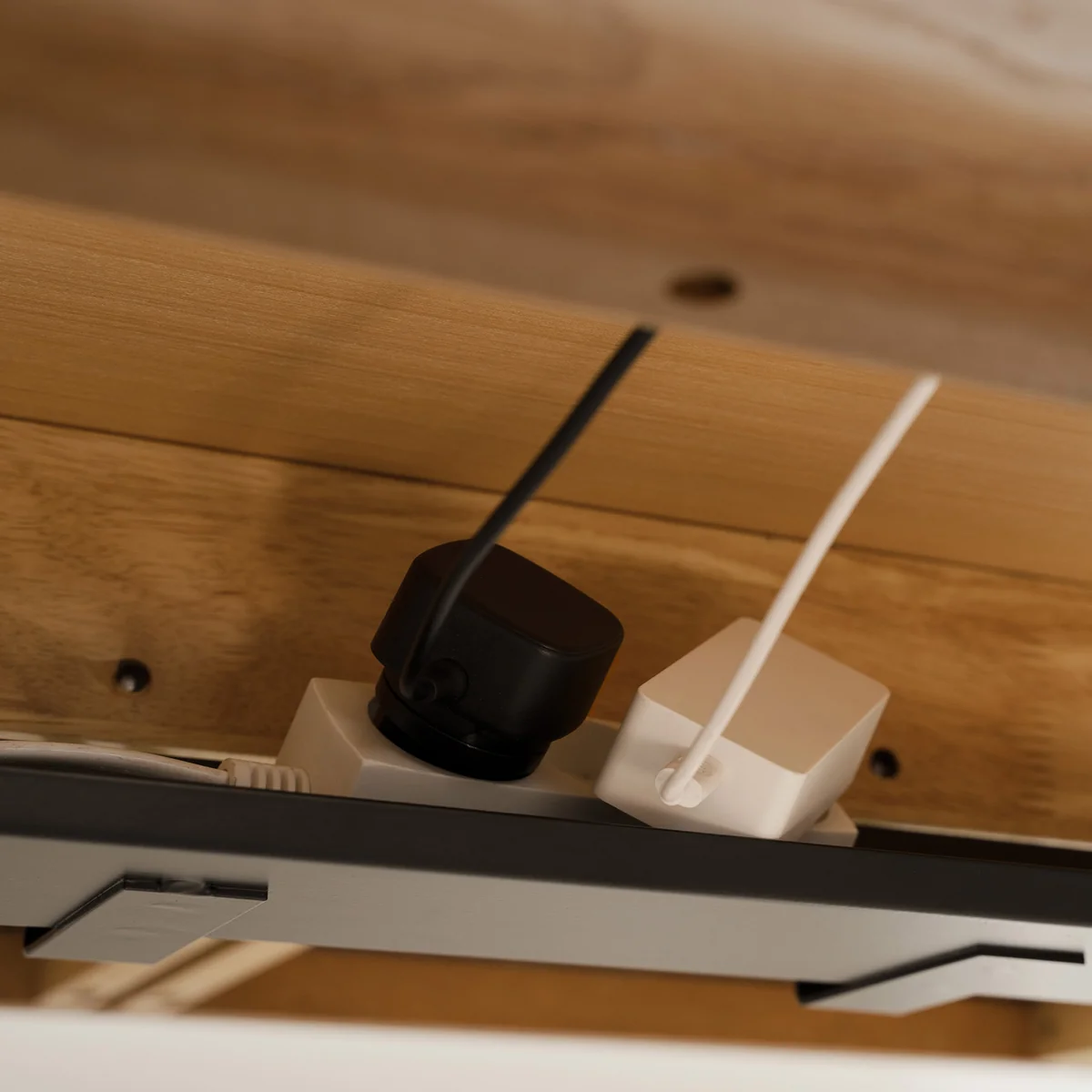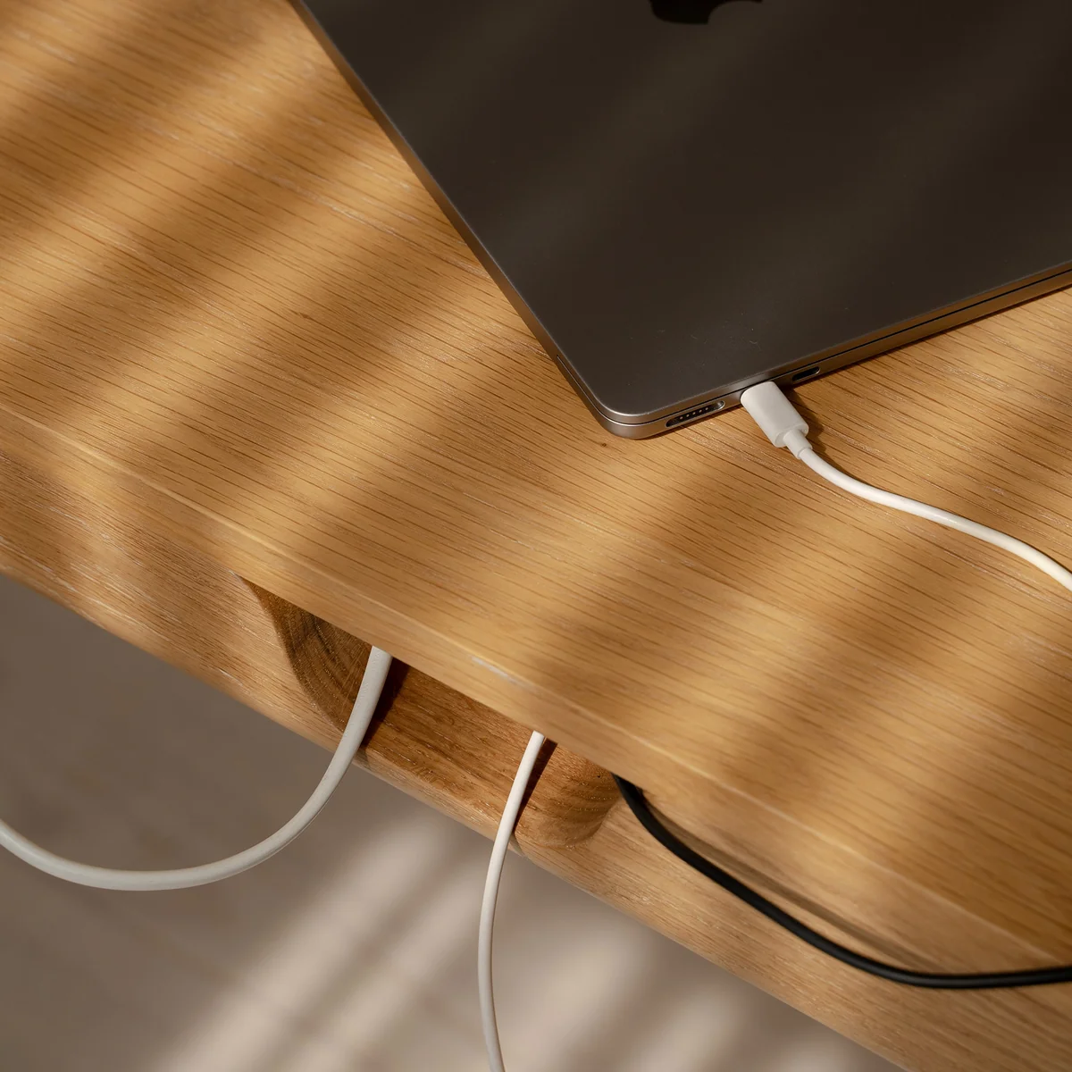 Zwei grosszügige Schubladen bieten Platz für Schreibutensilien und Alltagsgegenstände, während die integrierte Kabelablage Ladekabel und Technik elegant aus dem Blickfeld verschwinden lässt. So bleibt die Arbeitsfläche stets aufgeräumt und konzentriert nutzbar.