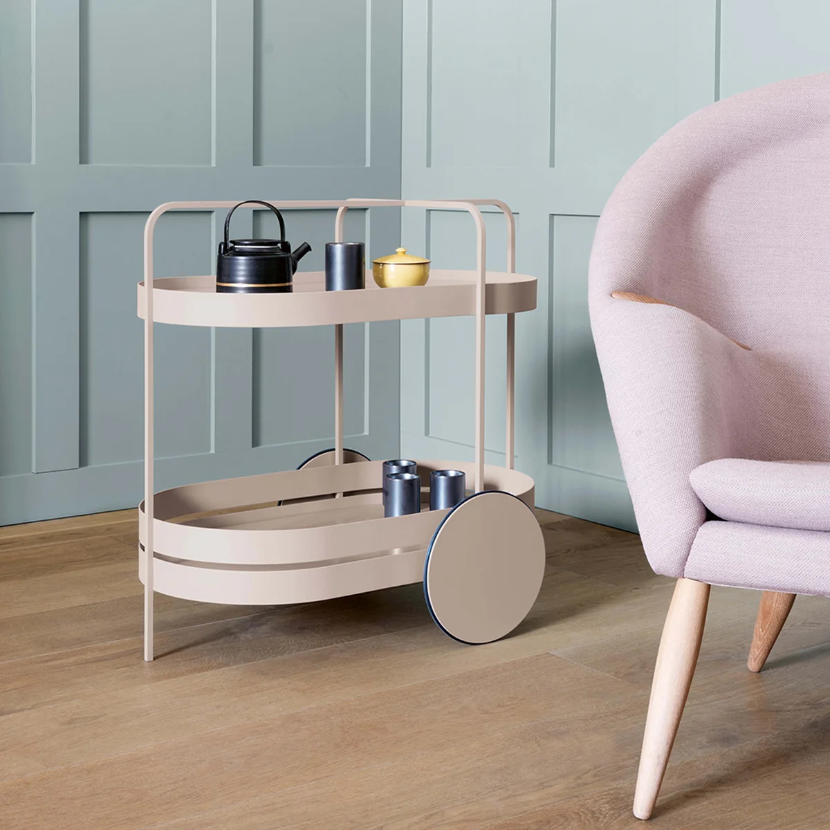 Der Grace Servierwagen von Sebastian Herkner für Schönbuch ist eine moderne Neuinterpretation des Servierwagens, der durch funktionelle Eigenschaften und pure Linien überzeugt. Der Designer liess sich für den mobilen Wagen von der Architektur der 1950er Jahre inspirieren. Seine klare Eleganz macht den Servierwagen zu einem besonderen Hingucker in jedem Raum.
