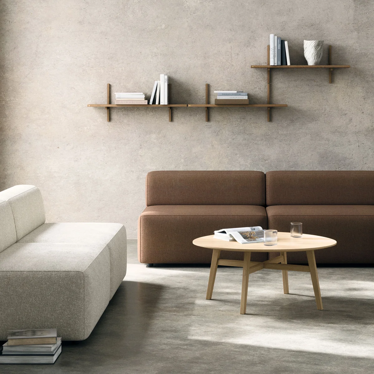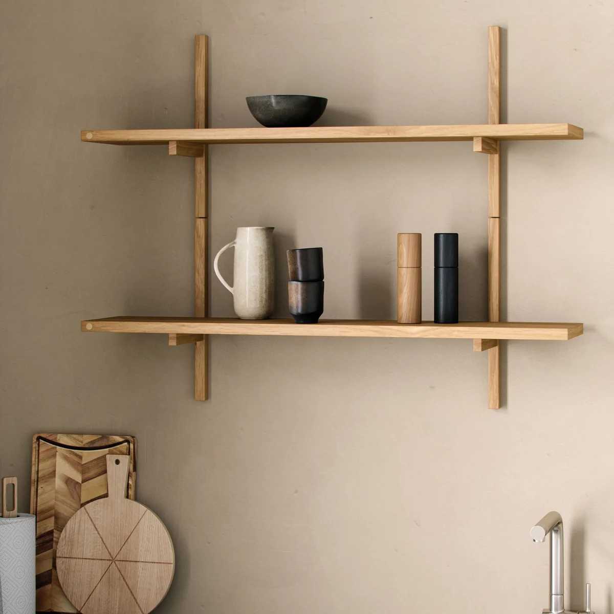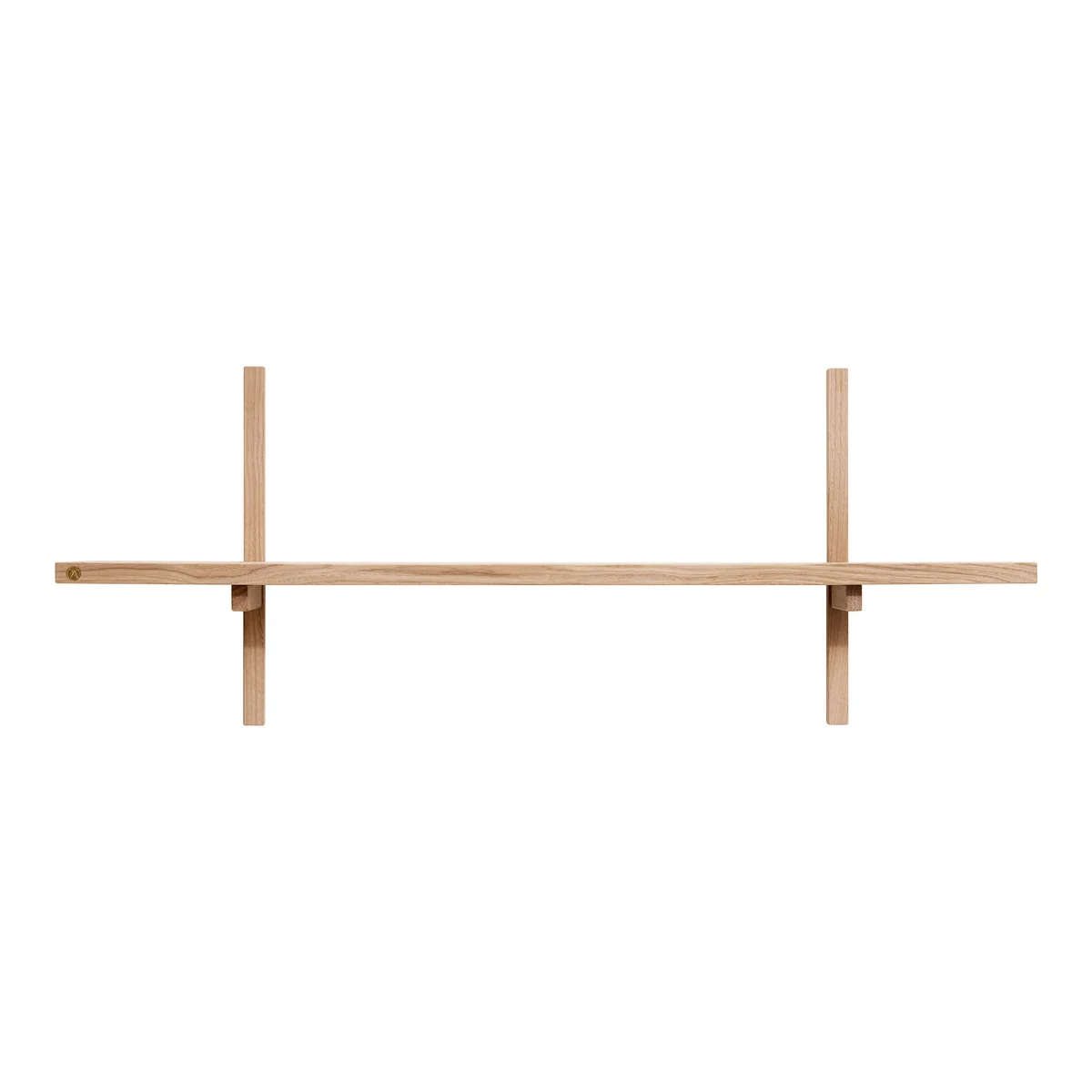 Durch die Anordnung mehrerer Regale neben- und übereinander kann der Benutzer ein leichtes und raffiniertes Regalsystem konstruieren, das die Schaffung individueller und einzigartiger Wandpräsentationen ermöglicht. Das aus massiver Eiche gefertigte Regal fügt sich nahtlos in jeden Raum ein und verleiht der Einrichtung einen Hauch von nordischem Charme und Wärme.