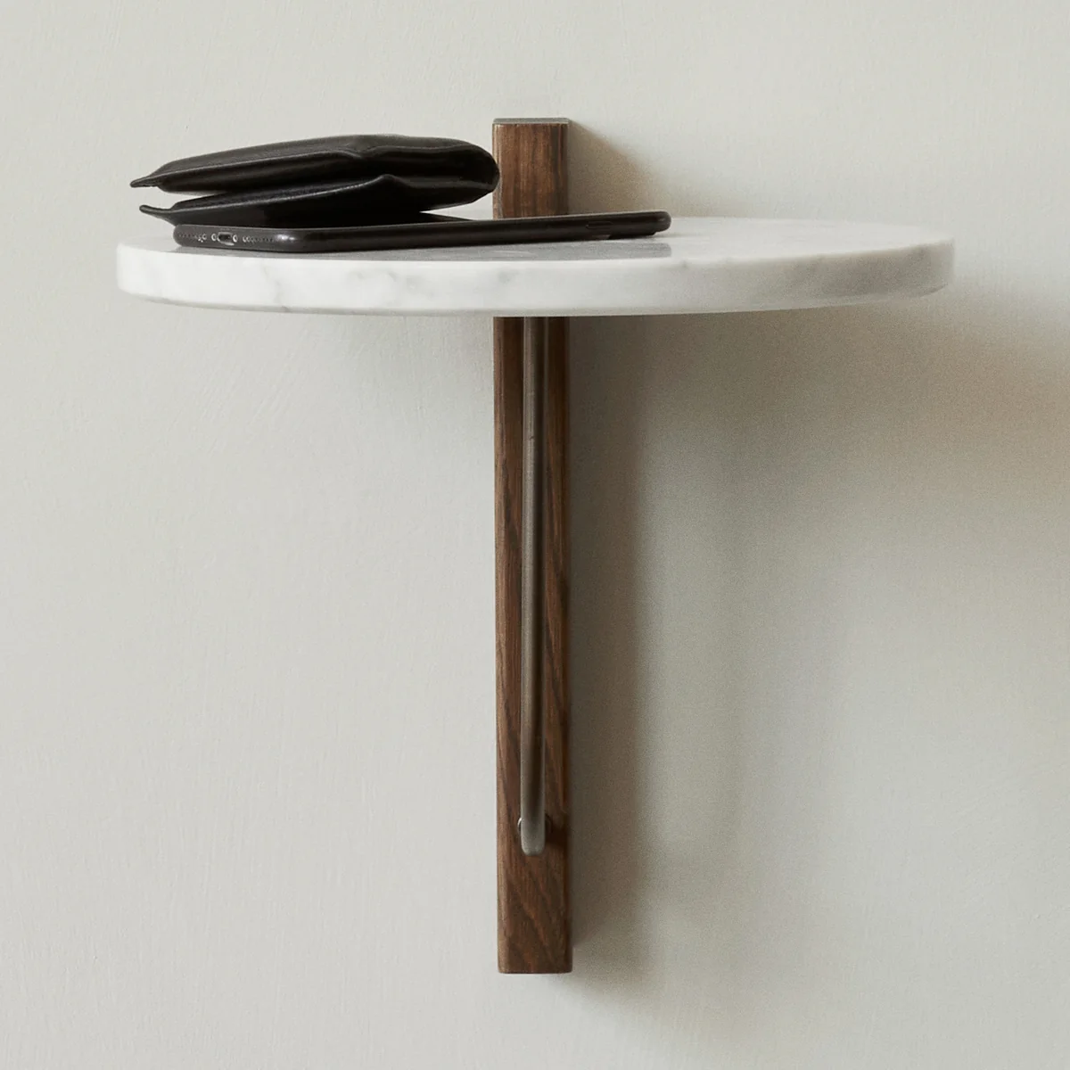 Das modernistische Corbel Wandregal von Audo ist ein an der Wand hängendes Podium, das kontrastierende Materialien mit auffälliger Wirkung kombiniert.