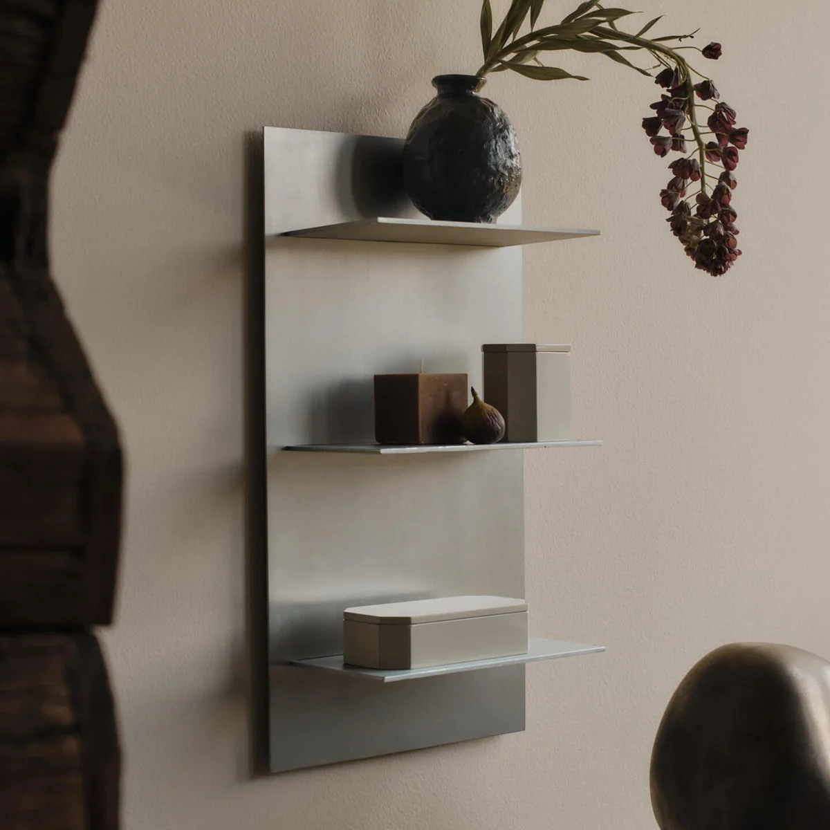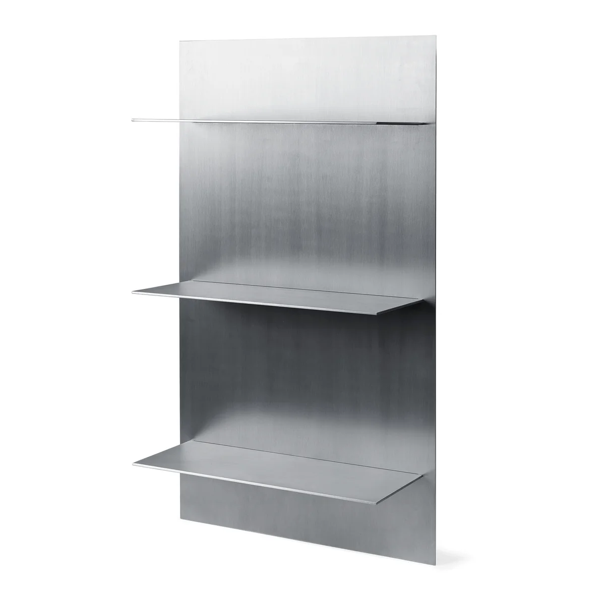 Das Lager Triple Wandregal von Ferm Living ist aus Aluminium gefertigt und greift industrielle und brutalistische Ästhetik auf. Es bietet schlanken, funktionalen Stauraum für jeden Raum. Das Design ermöglicht eine einfache Wandmontage mithilfe eines französischen Aufhängesystems, und der gleichmässige Abstand zwischen den Abschnitten ermöglicht das Stapeln mehrerer Regale, perfekt für eine zusammenhängende und hohe Bibliotheksausstellung.
