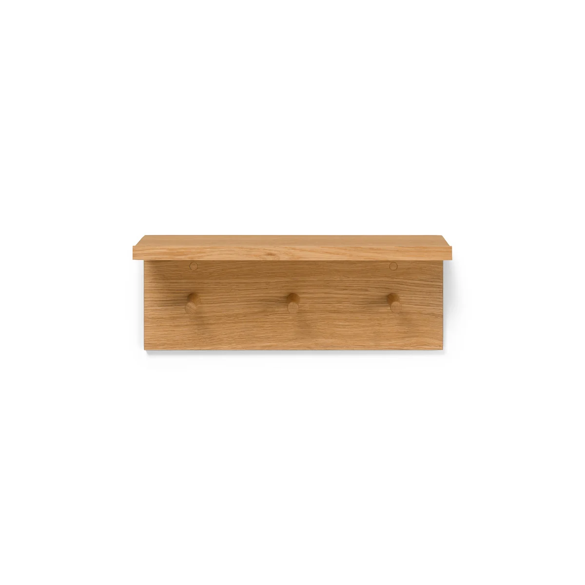 Das Place Wandregal des Labels Ferm Living ist der perfekte Beweis dafür, dass weniger mehr ist! Das minimalistische Regal passt sich ideal seinem Wohnumfeld an. Es wird aus geöltem Eichenfurnier mit MDF-Kern gefertigt. Die einzelnen Holzkappen sind bei Bedarf abnehmbar. Die Montage des Place Regals ist überaus simpel. Je nach Präferenz kann das Wandregal zum Aufhängen von Geschirrtüchern, Kuchenutensilien oder als Aufbewahrungsmöglichkeit für Hüte, Mützen, Jacken und Co genutzt werden.