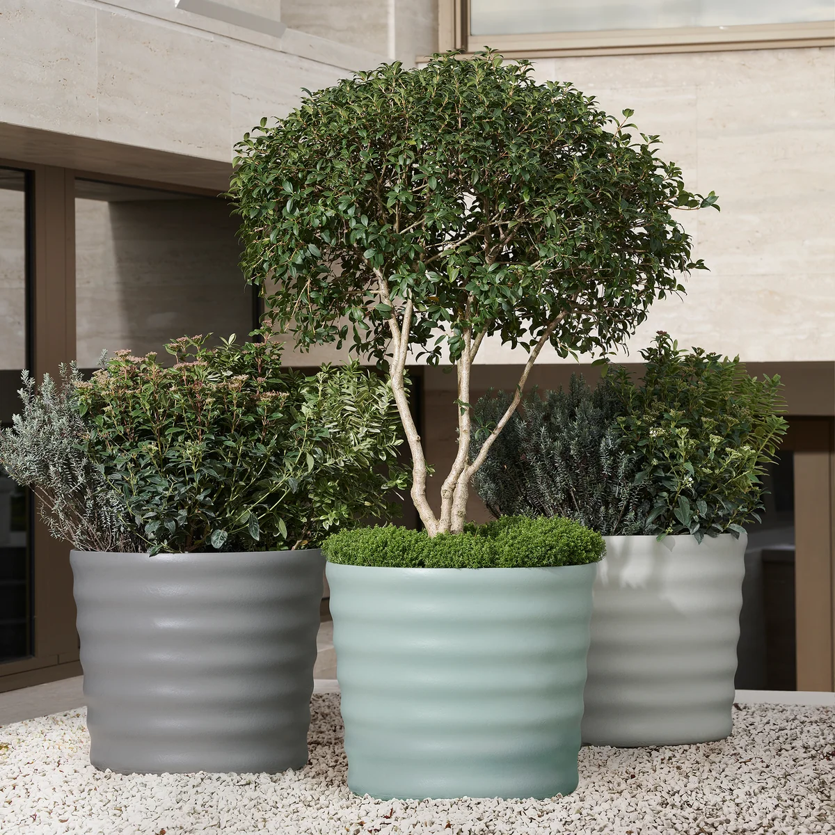 Die Pflanzgefässe von Eternit werden aus Faserzement hergestellt. Dieser besteht aus den natürlichen Stoffen Zement, Kalksteinmehl, Fasern, Luft und Wasser und ist zu 100 % recycelbar. Für Pflanzen bietet das Material den Vorteil, dass es atmungsaktiv ist und auf natürliche Art und Weise die Feuchtigkeit reguliert. Ausserdem wird der Faserzement von Eternit durchgefärbt, was Absplittern und Abfärben verhindert. Daher sind die Gefässe ausgesprochen langlebig.