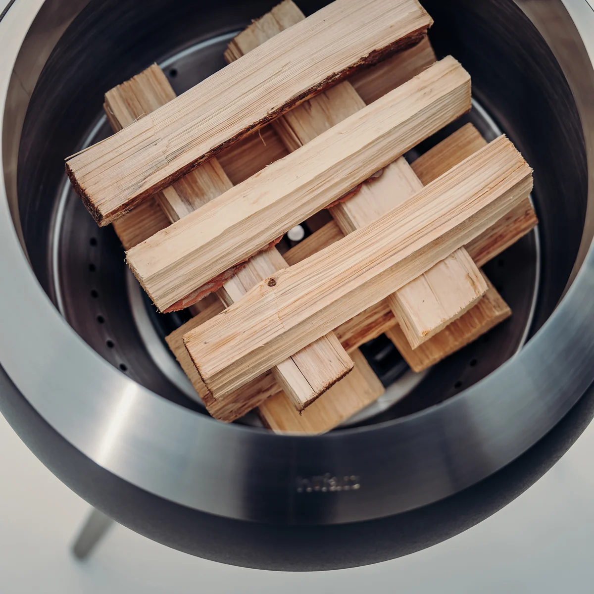 Der MOON lässt sich sowohl mit Scheitholz als auch mit Pellets betreiben. Bei Verwendung von ca. 10–12 kg Pellets bietet er ein nahezu rauchfreies Feuer mit bis zu 2 Stunden Brenndauer, ganz ohne Nachlegen. Perfekt geeignet für urbane Bereiche, in denen geringe Rauchentwicklung und hohe Effizienz besonders wichtig sind.