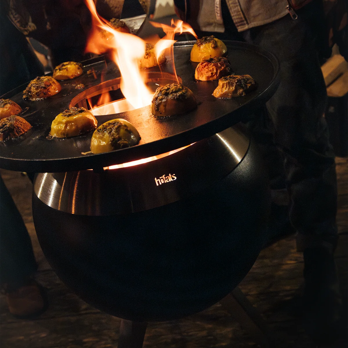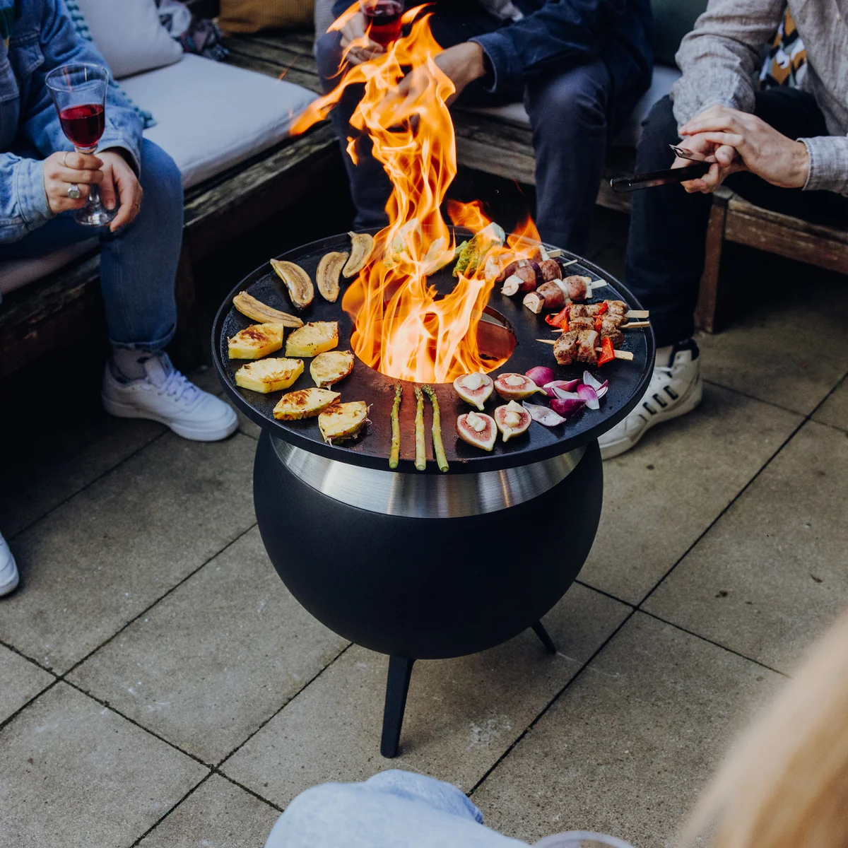 Für noch mehr Vielseitigkeit ist der MOON optional auch als Set mit Plancha erhältlich. Die gusseiserne Platte verwandelt den Feuerkorb im Handumdrehen in eine Koch- und Grillstation – ideal für aromatisches, fettarmes Outdoor-Cooking.